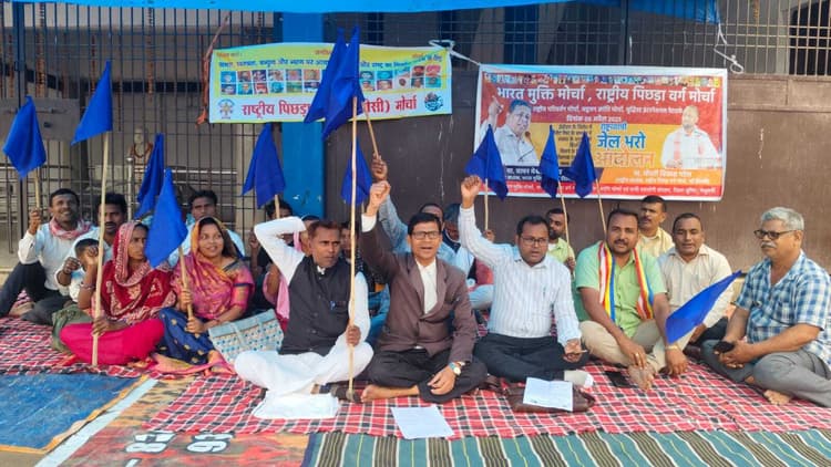 मधुबनी. भारत मुक्ति मोर्चा, राष्ट्रीय पिछड़ा वर्ग मोर्चा, राष्ट्रीय परिवर्तन मोर्चा, बहुजन क्रांति मोर्चा, बुद्धिस्ट इंटरनेशनल नेटवर्क एवं सभी सहयोगी संगठन के सदस्यों ने राष्ट्रव्यापी जेल भरो आंदोलन के तहत समाहरणालय के समक्ष धरना दिया. जिसका नेतृत्व भारत मुक्ति मोर्चा के जिलाध्यक्ष रंजीत कुमार, पिछड़ा वर्ग मोर्चा के जिलाध्यक्ष विजय कुमार ठाकुर एवं बीएमपी के जिला अध्यक्ष विश्वनाथ कुमार साहनी ने संयुक्त रूप से किया. मौके पर वक्ताओं ने कहा कि इवीएम को हटाकर बैलेट से चुनाव करायी जाए. वक्ताओं ने बोधगया के महाबोधि महाविहार को मुक्त कराने, बहुजन समाज की बहू-बेटियों पर हो रहे अन्याय अत्याचार एवं हत्या के पर रोक लगाने की मांग की. धरना देने वालों में संजय कुमार दास, कमलेश पासवान, डॉ. राम पुकार, रामनारायण पासवान सहित कई लोग मौजूद थे.