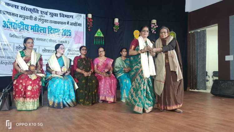 कला संस्कृति एवं युवा विभाग व जिला प्रशासन के तत्वावधान में अंतरराष्ट्रीय महिला दिवस पर मिथिला चित्रकला संस्थान में शनिवार को विभिन्न कार्यक्रमों का आयोजन किया गया. कला एवं संस्कृति पदाधिकारी नीतीश कुमार ने बताया कि अंतरराष्ट्रीय महिला दिवस पर तीन पद्म श्री बौआ देवी, दुलारी देवी एवं शिवन पासवान के निर्देशन में कार्यक्रमों का आयोजन हुआ. पहले सत्र में जिला के कलाकारों द्वारा चित्रांकन प्रतियोगिता में भाग लिया गया. मिथिला चित्रकला प्रतियोगिता के मल्टी परपस हॉल में 73 कलाकारों ने ऑन स्पॉट चित्रांकन किया. जिसे हॉल के दीवारों पर चिपका कर प्रदर्शनी किया गया.दूसरे सत्र में महिला कवि सम्मेलन, झिझिया नृत्य, लोक गायन,भाव नृत्य, नाट्य नृत्य जाट-जटिन नृत्य की प्रस्तुति हुई. महिला कवि सम्मेलन में मालती कुमारी, अनुपम झा, अनामिका चौधरी, अंजली कुमारी, विभा झा, कुमकुम ठाकुर ने अपने कविता से उपस्थित दर्शकों का भरपूर मनोरंजन किया. इस दौरान अनामिका चौधरी के कविता औरत को लोगों ने खूब सराहा. औरत को कोई बेबस न समझे, कोमल है कमजोर न समझे,उनके हृदय में प्यार भरा है, ममता स्नेह का भंडार भरा है. सांस्कृतिक कार्यक्रम में जाट-जटिन नृत्य में सेजल, अंशु, जूही मिश्रा, जूही झा, रिया, स्नेहा श्री, मधु कुमारी, सिद्धि, निशा, पूजा, सरिता, रंभा ने नृत्य प्रस्तुत किया. लोक गीत रूपांजलि की टीम के तरफ से प्रस्तुति दी गई. जन जागरण संगीत महाविद्यालय के तरफ से भाव नृत्य, नाट्य नृत्य की प्रस्तुति हुई. मंच संचालन सोनल पासवान ने किया.महिला कवयित्री को पद्मश्री ने किया सम्मानित