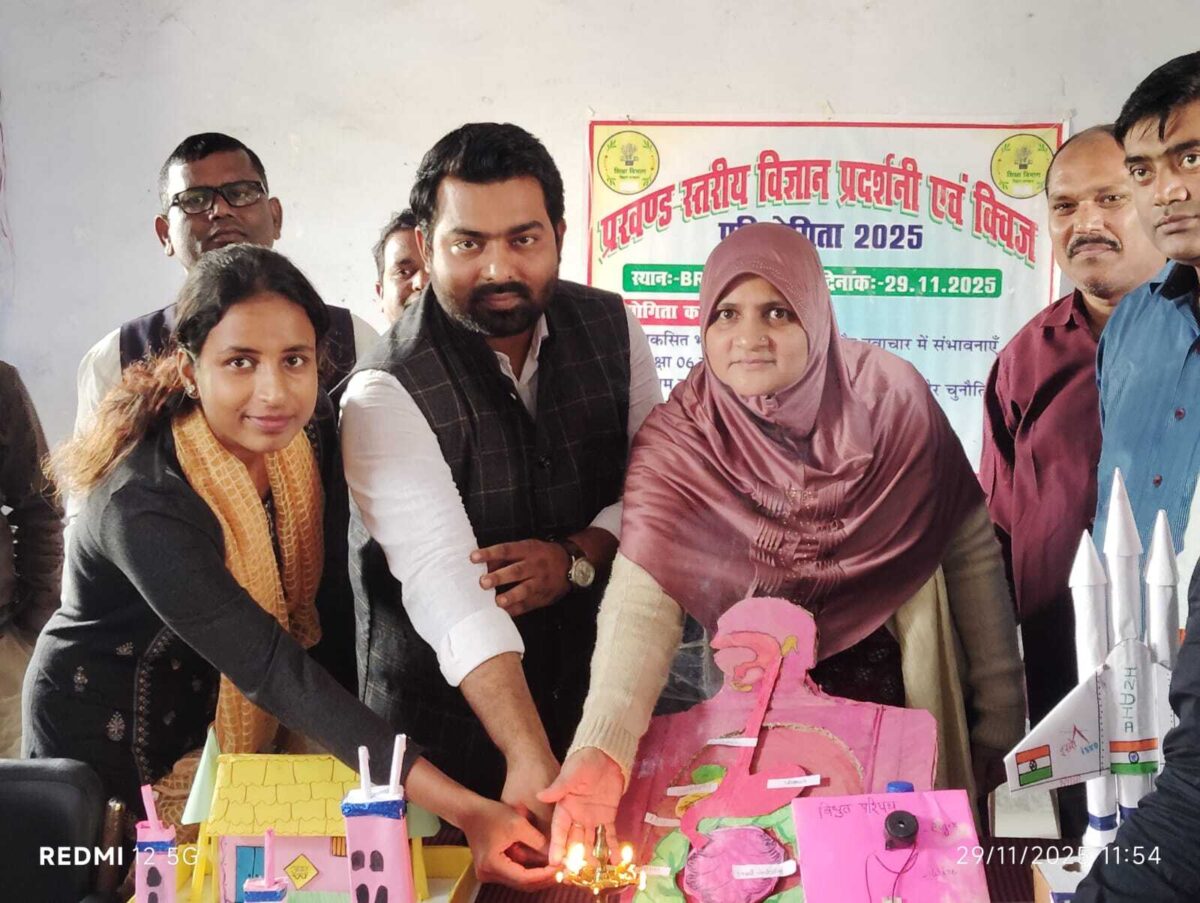 अंधराठाढ़ी: बीआरसी भवन परिसर में शनिवार को क्वीज और प्रदर्शनी प्रतियोगिता आयोजित की गई. जिसमें आठ छात्र सफल हुए. इस प्रतियोगिता में क्षेत्र के विद्यालय से 150 बच्चे शामिल हुए थे. प्रतियोगिता शुभारंभ से पूर्व बीईओ एवं अन्य लोगों ने दीप जलाकर कार्यक्रम की शुरुआत की. नोडल पदाधिकारी सह शिक्षक राहुल कुमार ने कहा कि इस प्रतियोगिता में आठ विधा थे. इसमें क्वीज और प्रदर्शनी के अंतर्गत विकसित भारत, कृत्रिम बुद्धिमता ( एआइ) क्वांटम युग थे. जिसमें एक- एक छात्र सफल हुए. वर्ग छठा से लेकर बारहवीं तक के बच्चे शामिल हुए थे. प्रतियोगिता में बीईओ नीतीश कुमार, शालिनी कुमारी, फातिमा, रविश कुमार, भोगेंद्र यादव आदि लोग मौजूद थे.