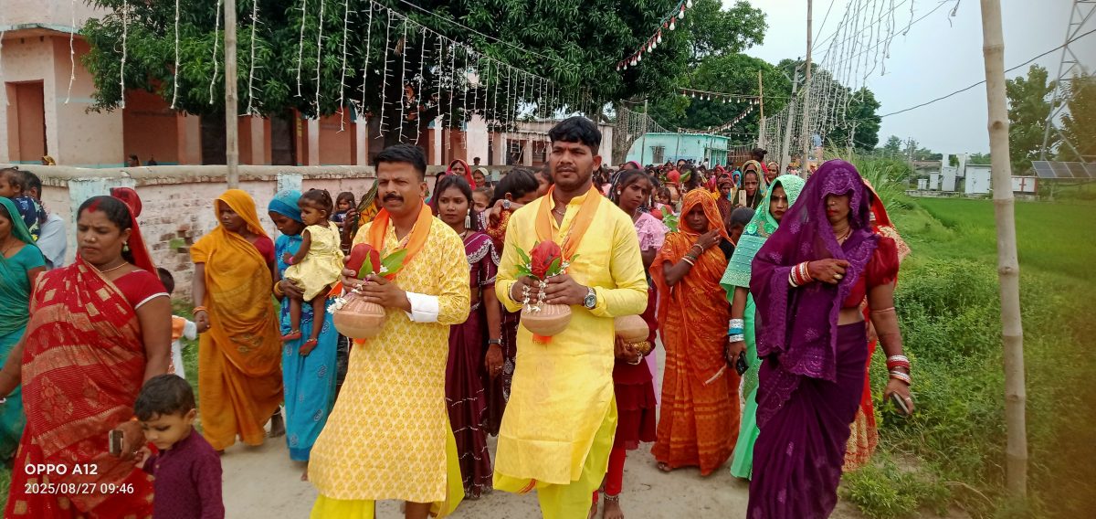 बीरपुर गांव में चार दिवसीय गणेश पूजनोत्सव का शुभारंभ शोभायात्रा के साथ हुई .