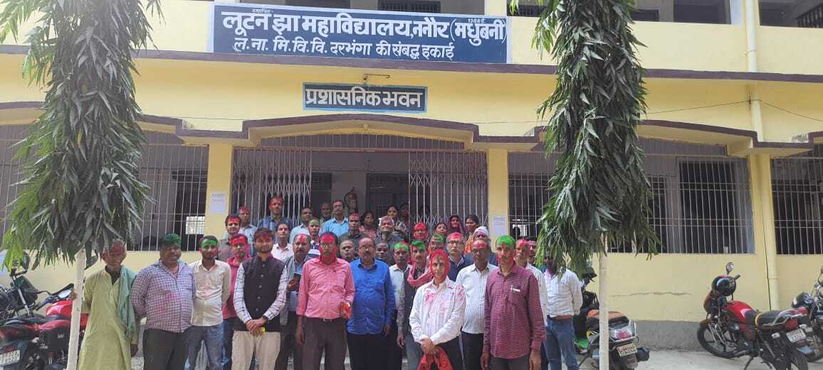मधुबनी. लूटन झा कॉलेज ननौर में होली मिलन समारोह का आयोजन हुआ. इस अवसर प्राचार्य आरएन झा ने कहा कि होली रंगों का त्योहार है. इसको सभी लोग हर्षोल्लास से मनायें तभी आनंद मिलेगा. श्री झा ने कहा कि जिस तरह से बाजार में मिलावटी रंग मिल रहा है, उसका उपयोग करने पर इसका प्रभाव गलत पड़ेगा. फूलों कीहोली खेलने से पानी की भी बचत होगा. इसलिए सभी को फूलों की होली खेलनी चाहिए. इस अवसर पर प्रो.मनोज कुमार झा,प्रो.तरुण कुमार झा, प्रो.कमर हुसैन, प्रो. योगेंद्र राम, प्रो. शिशुबोध झा, प्रो. बालानंद झा, मुरलीधर सेन, गोविंद ठाकुर व कर्मियों ने भाग लिया.