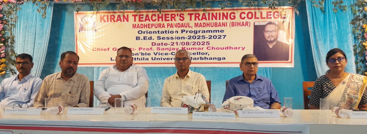 मधुबनी. आहां कोनो पैरवी नहि मेधा सं चुनि कय आयल छी तें संपूर्ण शिक्षण अवधि में पल-पल जीवन सार्थक करी. ये बातें किरण टीचर्स ट्रेंनिंग कॉलेज मधेपुरा पंडौल के वर्ष 2025 नूतन सत्रारंभ कार्यक्रम में विशिष्ट अतिथि के रूप में आए प्रसिद्ध मैथिली साहित्यकार, प्रो. अशोक कुमार मेहता (राज्य नोडल पदाधिकारी ) ने कही. प्रशिक्षण की विशेषता और उसमें किरण टीचर्स ट्रेंनिंग कॉलेज की उच्च स्तरीय अनुशासनिक, मूल्यपरक, शोधानुकूल शिक्षण व्यवस्था के क्षेत्र में योगदान की प्रशंसा की. नूतन एवं गत वर्ष के छात्र-छात्राओं को महा विद्यालय शिक्षा के अतिरिक्त नियमित स्वाध्याय व्रत का पालन करने का आग्रह किया. मुख्य अतिथि डॉ. अरुण कुमार सिंह (यूनिवर्सिटी साइंस कॉलेज इंस्पेक्टर) ने शिक्षण व्यवस्था और शिक्षक प्रशिक्षण व्यवस्था में विज्ञानपरक व्यवहारिकता, जो सत्य एवं तथ्य आधारित है को अपने जीवन का अंग बनाने का आग्रह किया. प्रथम भाग का संचालन महाविद्यालय के प्राध्यापक डॉ. पंकज कुमार पांडेय व द्वितीय सत्र का संचालन कॉलेज के सचिव सियाराम मिश्रा ने किया. इससे पहले कार्यक्रम की शुरुआत मां सरस्वती के चित्र के समीप शंखनाद व अतिथियों द्वारा दीप प्रज्वलन के साथ हुआ. महाविद्यालय छात्राओं सरस्वती वंदना एवं स्वागत गान के पश्चात मंच पर उपस्थित सम्मानित अतिथियों का प्रबंध समिति के सदस्य एवं ट्रस्टी श्री राम कुमार मिश्र ने पाग एवं दोपटा देकर स्वागत किया. महाविद्यालय प्रबंध समिति की सदस्या एवं ट्रस्टी पूनम चौधरी ने शिव मानस पाठ के साथ अपना उद्गार व्यक्त किया. पूर्व एमएलसी एवं महाविद्यालय के अध्यक्ष सुमन कुमार महासेठ ने शिक्षक प्रशिक्षक के रूप में उपस्थित छात्र-छात्राओं को सदैव अपने जीवन को महापुरुषों के सदृश आदर्श बनाने की अपील की. महाविद्यालय के सभी प्राध्यापक सहित कार्यालय सहायक गौरव कुमार मिश्रा, सूर्यकांत मिश्रा, राकेश कुमार कृष्ण मुरारी, राजा जी, ओम चंद्र पांडेय एवं अजय कुमार पांडेय के साथ सभी सेवा कर्मियों ने कार्यक्रम में चार चांद लगा दिया.