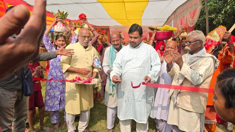फुलपरास. नगर पंचायत, फुलपरास के वार्ड 6 स्थित राम-जानकी मंदिर पर सोमवार को विवाह पंचमी महोत्सव के अवसर पर शोभायात्रा निकाली गयी. इसका शुभारंभ मुख्य पार्षद धर्मेंद्र कुमार साह, वार्ड पार्षद मिठुआ कामत, भरत कामत ने किया. जिसमें 151 कन्या शामिल हुई. इसमें विवाह पंचमी कमिटी के सदस्य के अलावा अन्य ग्रामीण लोगों की उपस्थिति में गांजे बाजे के साथ जय श्रीराम का नारा लगाते हुए मंदिर परिसर से कलशयात्रा विभिन्न मोहल्ला में भ्रमण कर ब्रह्मस्थान परिसर में स्थित कुंआ से पवित्र जल भरकर मंदिर परिसर पहुंचे, जहां पर विधिवत कलश स्थापित कर पूजन किया गया. विवाह पंचमी महोत्सव के अवसर पर कीर्तन भजन व राम कथा का आयोजन किया गया. मौके पर विवाह पंचमी कमिटी के अध्यक्ष राम पुकार साह, सचिव राधेश्याम तिवारी, कोषाध्यक्ष मिठू कामत, उपेंद्र ठाकुर, विलटू ठाकुर, लाल मोहन ठाकुर, धुरण साह, संजीत ठाकुर उपस्थित थे.