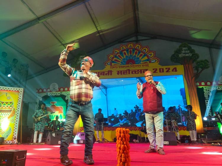जिला स्थापना दिवस के अवसर पर भव्य सांस्कृतिक कार्यक्रमों का आयोजन किया गया. सांस्कृतिक कार्यक्रम की शुरुआत गणेश वंदना से हुई. कार्यक्रम में स्थानीय और बाहरी कलाकारों ने अपनी अद्भुत प्रस्तुतियों से दर्शकों का मन मोह लिया. शुरुआत में कलाकारों ने जहां भगवान गणेश की वंदना कर पूरे कार्यक्रम को शुभता का आभास कराया. वहीं इसके बाद विभिन्न पारंपरिक नृत्यों, लोक गीतों और नाटकों की प्रस्तुति ने सभागार में बैठे लोगों को मंत्रमुग्ध कर दिया. कलाकारों ने मधुबनी की समृद्ध सांस्कृतिक विरासत को शानदार तरीके से प्रस्तुत किया. मिथिला रत्न कुंजबिहारी मिश्र एवं प्रसिद्ध उद्धोषक राम सेवक ठाकुर ने मिलकर मिथिला के नतवा स बढि गेलै शान यौ. जिसे लोगों ने खूब सराहा. जमकर तालियां बजी. इसके बाद कई गीत गाये गये. जिस पर दर्शक, श्रोता देर रात तक झूमते रहे. देर रात तक चले कार्यक्रम में स्थानीय शास्त्रीय गायन और नृत्य प्रस्तुतियों के साथ-साथ आधुनिक कला की प्रस्तुति हुई. इस अवसर पर मौजूद गणमान्य व्यक्तियों ने कार्यक्रम की सराहना की और कलाकारों का उत्साहवर्धन किया. वहीं स्थापना दिवस पर इस सांस्कृतिक आयोजन ने जिले के इतिहास और परंपराओं को जीवंत कर दिया. कार्यक्रम का समापन सामूहिक नृत्य और गीत के साथ हुआ, जिसने समस्त दर्शकों को आनंद व उल्लास से भर दिया.डिस्क्लेमर: यह प्रभात खबर समाचार पत्र की ऑटोमेटेड न्यूज फीड है. इसे प्रभात खबर डॉट कॉम की टीम ने संपादित नहीं किया है
