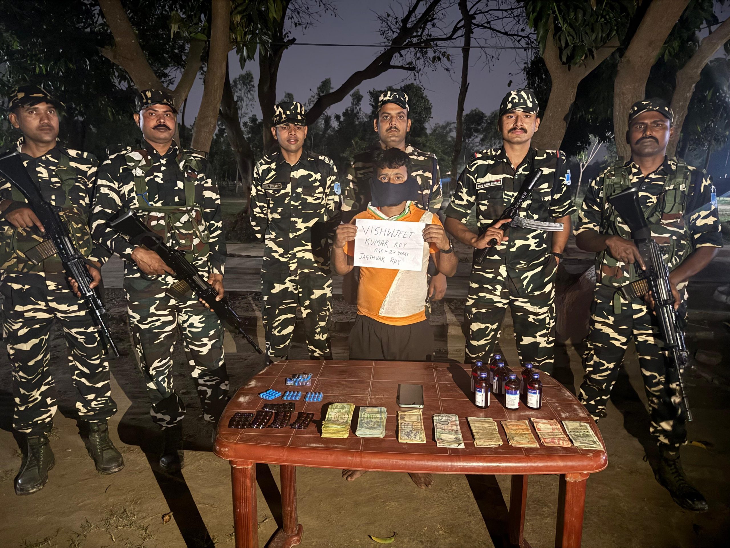 हरलाखी. भारत नेपाल सीमा पर तैनात पिपरौन कैंप के एसएसबी जवानों ने प्रतिबंधित नशीली दवा के साथ एक तस्कर को गिरफ्तार कर थाने की पुलिस को सुपुर्द कर दिया. गिरफ्तार तस्कर की पहचान नेपाल के धनुषा जिला अंतर्गत जनकपुरधाम निवासी विश्वजीत कुमार राय के रुप में बताया गया है. सीमा स्तंभ से लगभग 50 मीटर भारतीय क्षेत्र में विशेष गश्ती के दौरान यह कार्रवाई की गई. आरोपी युवक का तलाशी लेने पर प्रतिबंधित नशीली दवा सहित नेपाली मुद्रा व भारतीय मुद्रा बरामद हुई. एसएसबी के जवानों ने जब्त नशीली दवा व तस्कर को अग्रिम कार्रवाई के लिए थाने को सुपुर्द कर दिया. थानाध्यक्ष जितेद्र कुमार सहनी ने कहा कि एसएसबी के प्रतिवेदन पर प्राथमिकी दर्ज कर गिरफ्तार तस्कर को जेल भेज दिया गया.