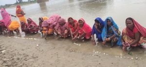 थाना क्षेत्र के घोंघौर गांव की सैकड़ों महिलाओं ने कलश में जल बोझने पिपराघाट के कमला बलान एवं त्रिवेणी संगम तट पर बुधवार को पहुंची