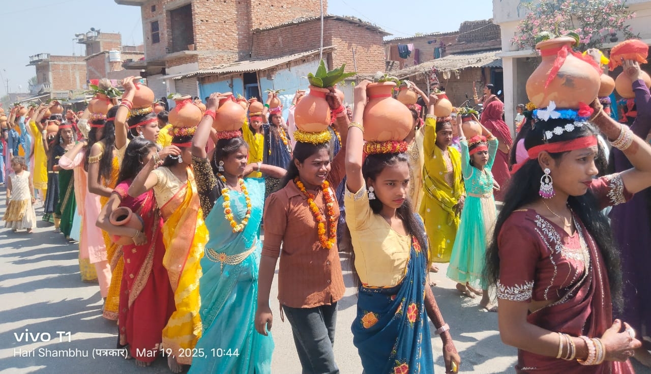 हरलाखी. पिपरौन गांव में महावीरी झंडा पूजा महोत्सव की शुरुआत भव्य कलश शोभायात्रा के साथ की गयी. इस अवसर पर गाजे बाजे के साथ शोभायात्रा पूजा स्थल से प्रारंभ होकर गांव का भ्रमण करते हुए ब्रहम स्थान का परिक्रमा की. फिर भारत – नेपाल सीमा स्थित जमुनी नदी पहुंची, जहां पर पंडितों के वैदिक मंत्रोंचार के साथ कलश में जल भरा गया. उसके बाद कलश में जल भरकर सभी कन्याएं पूजा स्थल पहुंची. जहां विधिवत सभी कलश को सत्यापित किया गया. इधर, महावीरी झंडा को लेकर गांव का माहौल भक्तिमय बना हुआ है. ग्रामीणों का उत्साह चरम पर है. इस अवसर पर पूजा कमिटी के अध्यक्ष रवींद्र महतो, कोषाध्यक्ष राम सागर महतो, पलट महतो, सचिव संजय महतो, सदस्य उमेश महतो, जुगल महतो, रामईश्वर महतो, राजेश महतो, किशुन महतो, राज नारायण यादव, मुन्ना महतो, गिरजा महतो, संजय महतो, जतन महतो, बिल्टू प्रसाद महतो, सरपंच अशेश्वर मुखिया, प्रमोद गुप्ता, श्याम पूर्वे, अनिल कुमार सिंह, रत्नेश्वर ठाकुर, विजय मार्शल, दीपक कुमार, संजीव कुमार सहित अन्य लोग मौजूद थे.