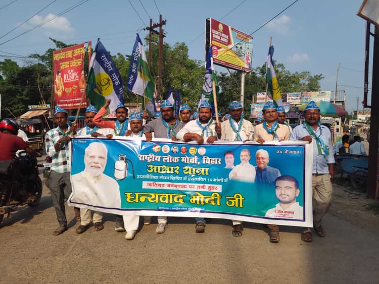 मधुबनी. रालोजद के राष्ट्रीय अध्यक्ष उपेंद्र कुशवाहा के आह्वान पर प्रधानमंत्री मोदी की ओर से जातीय जनगणना की मांग को स्वीकृति देने पर आभार यात्रा निकाली गयी. यात्रा का नेतृत्व जिलाध्यक्ष रंजीत कामत ने की. वक्ताओं ने कहा कि देश में जातीय जनगणना कराने का कैबिनेट में मंजूरी देना एक ऐतिहासिक फैसला है. इस खुशी में प्रधानमंत्री नरेन्द्र मोदी के प्रति आभार यात्रा निकाल कर धन्यवाद यापन किया गया. पिछले दिनों वाल्मीकिनगर के कन्वेशन हॉल में तीन दिवसीय राष्ट्रीय लोक मोर्चा का चिंतन शिविर आयोजित किया गया था. जिसमें जातिय जनगणना की भी मांग सभी पार्टी के कार्यकर्ता के सहमति की गयी थी. साथ ही 14 सूत्री प्रस्ताव पारित किया गया था. जिसमें से पहली मांग जातीय जनगणना को प्रधानमंत्री ने स्वीकृति दी है. अन्य मांगों को भी मानने के लिए विचार करने की अपेक्षा है. कार्यक्रम में वैद्यनाथ मेहता, नवीन सिंह कुशवाहा, शंकर प्रसाद, रामसागर शर्मा, नंद कुमार पासवान, मनोज सिंह, नंद लाल सिंह, शैलेंद्र, अभिषेक, अरुण कामत, पशुराम कामत, गणेश कामत ने भाग लिया.