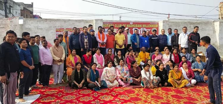 मधुबनी. रोटरी क्लब ऑफ मधुबनी मिलेनियम की ओर से तीन दिवसीय योग प्रशिक्षण शिविर का आयोजन किया गया. क्लब अध्यक्ष डॉ. माला कुमारी ने कहा कि बाबू साहेब चौक स्थित क्रिएटिव पब्लिक स्कूल परिसर में योग प्रशिक्षण शिविर आयोजित की गयी है. प्रशिक्षण शिविर सुबह और शाम दो पाली में तीन दिनों तक छह सत्र में आयोजित की गयी. योग शिविर में पुरुष एवं महिला शिक्षाविद, चिकित्सक, राजनेता, समाजसेवी एवं आमलोग शामिल हुए. रोटरी क्लब ऑफ मधुबनी मिलेनियम के सचिव एवं रोटेरियन डॉ. केके दास और कोषाध्यक्ष रोटेरियन विवेक महासेठ ने कहा कि योग की प्रमुख क्रियाओं में सर्वासन, नौकासन, क्रीड़ासन, जेस्टिक आसान, भुजंगासन, मरजी आसान, बज्रासन, पद्मासन, संघ प्रछालन, योगमुद्रासन, पादहस्तासन, मर्कटासन, तिर्यक ताड़ासन, मंडूकासन, उष्ट्रासन, भुजंगासन, ताड़ासन, सूर्य नमस्कार, प्राणायाम आदि मुख्य रूप से कराए गए. साथ ही योग शारीरिक और मानसिक स्वास्थ्य के लिए लाभदायक है की भी जानकारी दी गयी. योग शिविर में रोटरी क्लब ऑफ मधुबनी मिलेनियम की अध्यक्ष डॉ. माला कुमारी, सचिव डॉ. केके दास, रोटेरियन विवेक महासेठ, डॉ. रौशन कुमार, प्रशांत कुमार सिंह, प्रीति पल्लवी, डॉ. एसएन लाल, श्रवण पूर्वे, अमित महासेठ, गोपी बुबना, अजय धारी सिंह, निशा कुमार, आशा महासेठ, विभा कुमारी, डॉ. महेश कुमार, डॉ. प्रभात कुमार, डॉ. कौशल कुमार भारती, मनीषा कुमारी लाल, आनंद शंकर मिश्रा, डॉ. पुष्पा झा, डॉ. रमा झा, डॉ. कवि शंकर, प्रीति बैरोलिआ, इंद्र भूषण रमन, राकेश कुमार, प्रशांत राउत सहित करीब 250 लोग ने भाग लिया. क्रिएटिव पब्लिक स्कूल के प्राचार्य शालिनी साह ने प्रशिक्षण शिविर में सक्रिय रूप से भाग लिया.