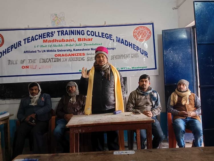 झंझारपुर. मधेपुर टीचर्स ट्रेनिंग कॉलेज, मधेपुर द्वारा “शिक्षा की भूमिका से सतत विकास लक्ष्यों की प्राप्ति” विषय पर दयाराम उच्च विद्यालय, भेजा, मधेपुर में एक सेमिनार का आयोजन किया गया. इस सेमिनार का उद्देश्य छात्रों में सतत विकास, सामाजिक जिम्मेदारी एवं शिक्षा के महत्व के प्रति जागरूकता उत्पन्न करना था. सेमिनार का शुभारंभ दीप प्रज्वलन से हुआ. इसके बाद तिलावत-ए-क़ुरआन, सरस्वती वंदना से किया गया. सेमिनार के मुख्य वक्ता डॉ. बिमलेश कुमार सिंह, सहायक प्राध्यापक मधेपुर टीचर्स ट्रेनिंग कॉलेज, मधेपुर थे. कार्यक्रम के दौरान उन्होंने ने बताया कि शिक्षा न केवल ज्ञान अर्जन का माध्यम है, बल्कि यह गरीबी उन्मूलन, लैंगिक समानता, गुणवत्तापूर्ण स्वास्थ्य, स्वच्छ पर्यावरण तथा समावेशी समाज के निर्माण में भी महत्वपूर्ण भूमिका निभाती है। छात्रों को यह समझाया गया कि शिक्षित नागरिक ही सतत विकास लक्ष्यों को व्यवहार में उतार सकते हैं. सेमिनार के दूसरे विशेषज्ञ सुशील कुमार रॉय ने कहा कि शिक्षा के माध्यम से विद्यार्थियों में नैतिक मूल्य, वैज्ञानिक सोच और वैश्विक दृष्टिकोण का विकास होता है, जो सतत विकास के लिए अनिवार्य है. सेमिनार के तीसरे विशेषज्ञ दिव्यांशु शेखर, ने कहा कि शिक्षा किसी भी समाज के सामाजिक, आर्थिक और सांस्कृतिक विकास की रीढ़ होती है. यह व्यक्ति में ज्ञान, कौशल, मूल्य और दृष्टिकोण का विकास करती है, जिससे वह अपने जीवन के साथ-साथ समाज और राष्ट्र के विकास में योगदान दे सके. विद्यालय के प्राध्यापक संजीव कुमार झा ने कहा कि बालिकाओं और महिलाओं को समान शैक्षिक अवसर प्रदान करने से न केवल उनका आत्मविश्वास और निर्णय-क्षमता बढ़ती है, बल्कि समाज में उनकी भागीदारी भी सुदृढ़ होती है.शिक्षा रूढ़ियों और भेदभाव को चुनौती देती है तथा समानता, सम्मान और अधिकारों की समझ विकसित करती है। इसके साथ ही, शिक्षा हाशिए पर मौजूद समुदायों को मुख्यधारा से जोड़कर सामाजिक न्याय को बढ़ावा देती है. व्याख्यता मुजाहिद हुसैन, अविनाश कुमार सहित अन्य ने संबोधित किया.