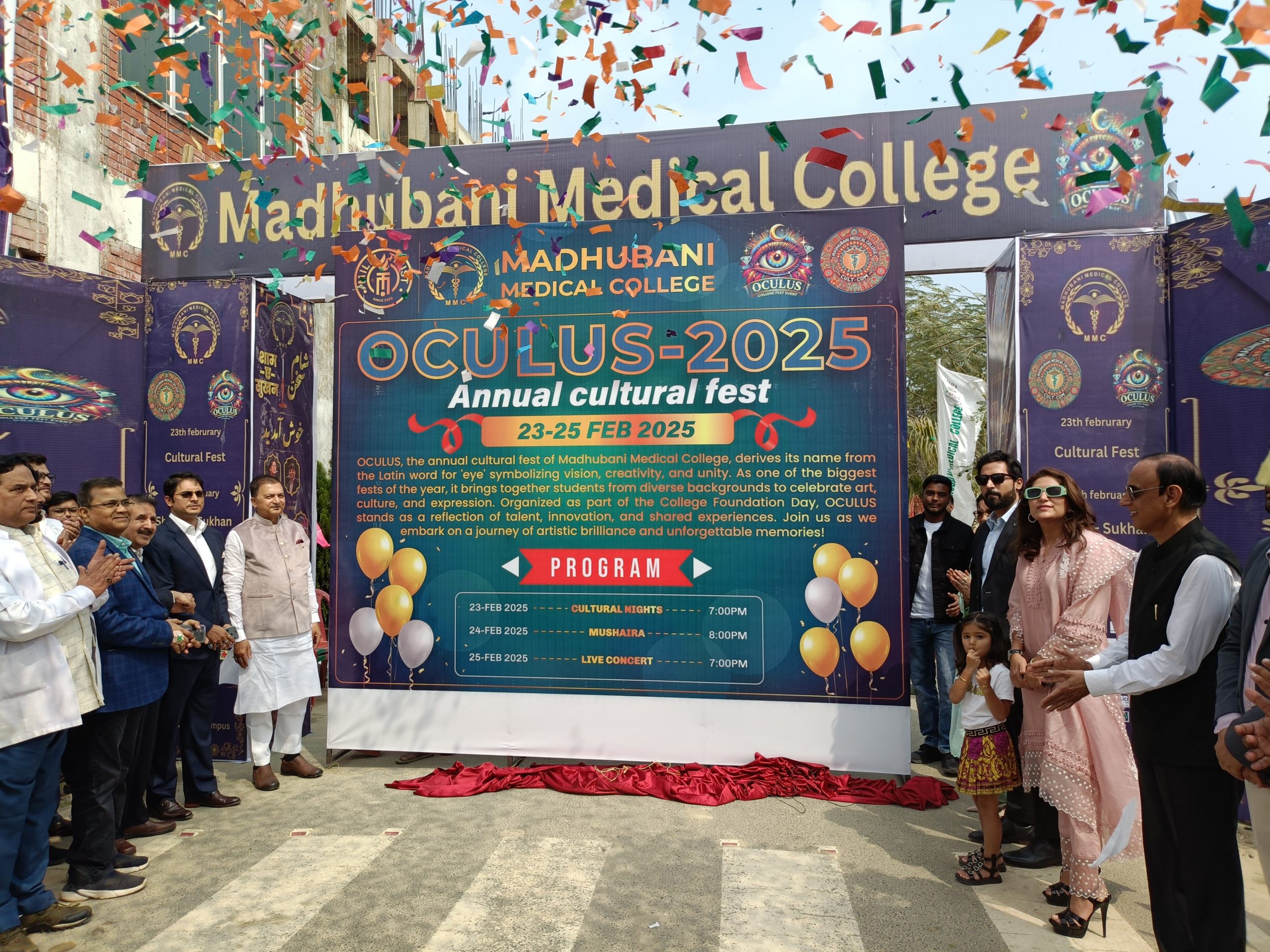 मधुबनी. मधुबनी मेडिकल कॉलेज एंड हॉस्पिटल के छठे स्थापना दिवस समारोह का उद्घाटन एमएमसीएच के चेयरमैन व सांसद डॉ. फैयाज अहमद, कॉलेज के एमडी तौसीफ अहमद, आसिफ अहमद व निकहत रेयाजी व कॉलेज के प्राचार्य ने संयुक्त रूप से किया. इस अवसर पर चेयरमैन डॉ. फैयाज अहमद ने कहा कि बहुत खुशी की बात है कि आज मधुबनी मेडिकल कॉलेज में पढ़कर छात्र देश के कई राज्य में जाकर लोगों का इलाज कर रहे हैं. महज छह साल में कॉलेज में पीजी की पढ़ाई भी शुरू हो गयी. इस अवसर पर आसिफ अहमद ने कहा कि एमएमसीएच में एक बैच के छात्र को एमबीबीएस की डिग्री मिल चुकी है. दूसरे बैच को भी इस वर्ष डिग्री मिल जाएगी. तीन सौ छात्र चिकित्सक बनने की अहर्ता प्राप्त कर लिया है. कॉलेज के एमडी तौसिफ अहमद ने एमएमसीएच के स्थापना दिवस समारोह में आयोजित कार्यक्रम के बारे में जानकारी दी. उन्होंने कहा कि तीन दिवसीय कार्यक्रम में रविवार को कॉलेज के छात्र व चिकित्सक मिथिला पेंटिंग, वाद-विवाद प्रतियोगिता, गेम्स, फोक डांस, फैशन शो सहित नुक्कड़ नाटक के माध्यम से स्वास्थ्य संबंधी जानकारी दी जाएगी. एमडी ने कहा कि मधुबनी मेडिकल कॉलेज अस्पताल में नियमित वर्ग संचालन के साथ ही प्रायोगिक वर्ग नियमित होने के कारण बेहतर चिकित्सीय शिक्षा दी जा रही है. इस अवसर पर मेडिकल कॉलेज अस्पताल को आकर्षक तरीके से सजाया गया है.