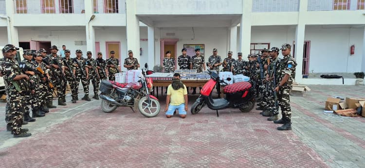 जयनगर. भारत-नेपाल सीमा पर नशीली दवा की तस्करी रोकने के लिए 48वीं वाहिनी सशस्त्र सीमा बल जयनगर के जवान लगातार अभियान चला रहे हैं. इस मुहिम के तहत एसएसबी जवानों को बड़ी सफलता मिली है. यह कार्रवाई भारत-नेपाल सीमा चौकी कमला के जिम्मेवारी क्षेत्र अंतर्गत की है. भारत-नेपाल सीमा स्तंभ से लगभग 1.4 किमी भारत की ओर स्थित पटना गद्दी चौक पर एक तस्कर को भारी मात्रा में प्रतिबंधित नशीली दवा और अन्य सामग्रियों के साथ पकड़ा. गिरफ्तार व्यक्ति की पहचान रितेश कुमार सिंह 28 वर्ष ग्राम छतौनी थाना बासोपट्टी निवासी के रूप में हुई है. छापेमारी के दौरान दुकान से विभिन्न प्रकार की कफ सिरप 2764 शीशी, नशीली टैबलेट्स, इंजेक्शन सहित भारतीय मुद्रा 1 लाख 64 हजार 690, नेपाली मुद्रा, 1 हजार 500 रुपये व दो बाइक जब्त की. गिरफ्तार व्यक्ति व जब्त सामग्री को अग्रिम कार्रवाई के लिए जयनगर थाना पुलिस को सुपुर्द कर दिया गया. उप कमांडेंट (प्रचालन) विवेक ओझा ने बताया कि गुप्त सूचना पर कार्यवाही करते हुए समवाय प्रभारी कमला के निर्देशन में बिहार पुलिस के साथ विशेष संयुक्त गश्ती अभियान चलाया गया. जयनगर 48 वीं वाहिनी के कमांडेंट गोविंद सिंह भंडारी ने इस साहसिक कार्रवाई के लिए टीम की सराहना की. कहा कि भारत-नेपाल सीमा पर नशीली दवा सहित सभी प्रकार की तस्करी रोकने के लिए सशस्त्र सीमा बल पूरी तरह सजग एवं प्रतिबद्ध है.