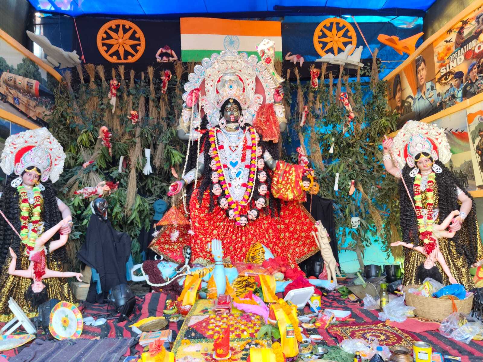 मधुबनी. जिला मुख्यालय सहित जिले के ग्रामीण क्षेत्रों में बीते सोमवार से तीन दिवसीय मां काली पूजनोत्सव की शुरुआत हुई. इसके लिए शहर के थाना मोड़, सप्ता, धनुषी, रहिका सहित दर्जनों जगहों पर आकर्षक पूजा पंडालों का निर्माण किया गया है. आकर्षक पूजा पंडालों में मां काली की प्रतिमा स्थापित कर श्रद्धालु उनकी आराधना कर रहे हैं. मंगलवार को भी श्रद्धालु नर-नारियां अपने हाथों में फूल, अक्षत, बेलपात, धूप-दीप नैवेद्य से सजी डालियां लिये पूजा पंडालों की ओर रुख करते दिखे. हजारों भक्तों श्रद्धा व निष्ठापूर्वक मां काली की आराधना कर अपने सकल परिवार के लिए मंगल की. मां काली की मंदिर व पूजा पंडालों से निकल रहे मां के जयकारे से संपूर्ण वातावरण आध्यात्मिक रस से सराबोर हो गया है. हर भक्तों के सिर पर मां काली की भक्ति का असर स्पष्ट रूप से दिख रहा है. वहीं, काली पूजा समिति सप्ता की ओर से इस वर्ष भी हर्षोल्लास से तीन दिवसीय काली पूजा का आयोजन किया जा रहा है. यहा मां काली की पूजा तांत्रिक विधि से करने की परंपरा है. मां काली पूजनोत्सव के अवसर पर सांस्कृतिक कार्यक्रम का आयोजन भी किया गया है. मंगलवार को मां काली की पूजा करने काफी संख्या में श्रद्धालु यहां दिखे. वहीं, महिलाओं ने मां काली के समक्ष भाड़ी संख्या में खोइंछा भरा. पूजा के सफल आयोजन के लिए समिति के अध्यक्ष तारानंद झा, सचिव आशीष कुमार चौधरी, कोषाध्यक्ष विजय शंकर झा, राजू झा, कन्हैया झा, अशोक झा, पवन कुमार चौधरी, किशोर चौधरी, आरती कांत झा, गोपी रमण झा, बाबू साहब, जयकांत चौधरी, गोपी रमण झा, दीपक कुमार, चंदन कुमार सहित सभी ग्रामीण जुटे हुए हैं.