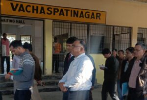 समस्तीपुर मंडल रेल महाप्रबंधक ज्योति प्रकाश मिश्रा स्पेशल निरीक्षण ट्रेन से शुक्रवार को वाचस्पति नगर पहुंचे.