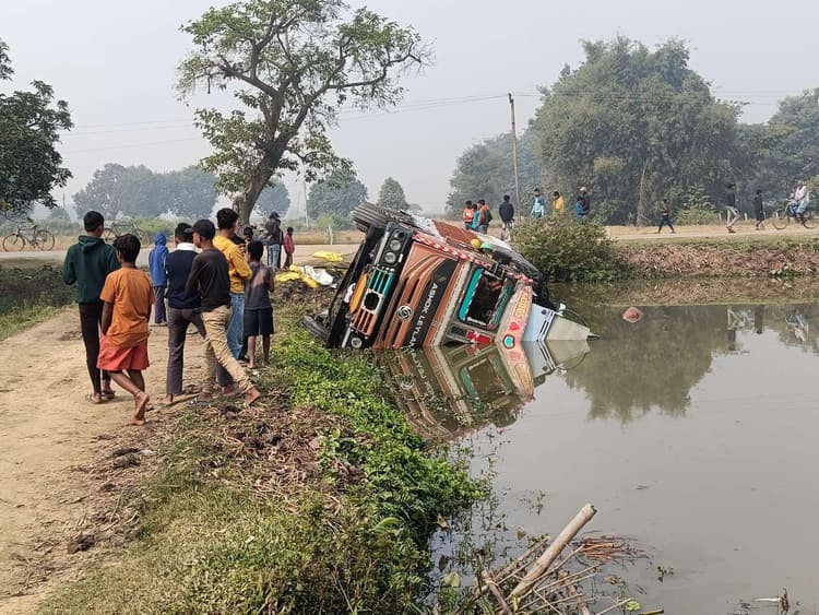 फुलपरास. पुलिस को बुधवार को सूचना मिली कि शराब लोड ट्रक एनएच 27 से कटकर ब्रह्मपुर से सांगी जाने वाले सड़क में जा रहा है. इसके बाद पुलिस टीम ने पीछा किया. सांगी गांव के समीप सड़क किनारे तालाब में शराब लदा ट्रक मोड़कर चालक फरार हो गया. जहां ट्रक पलटने के बाद घटनास्थल पर लोगों की भीड़ उमड़ पड़ी. पुलिस टीम घटना स्थल पर पहुंचकर तालाब से ट्रक को बाहर निकाल जांच की, लेकिन ट्रक की बॉडी पूरी तरह से बंद थी. पुलिस ने ट्रक की बॉडी बंद होने पर जेसीबी मंगवाकर ट्रक को गड्ढे से निकले की कोशिश की, लेकिन ट्रक बड़ा था और उसमें शराब भरी थी. जिसके बाद पुलिस ने क्रेन मंगवाया और तालाब में ट्रक को निकाला गया. ट्रक में बॉडी बनाकर शराब रखी थी. पुलिस प्रशासन ट्रक से शराब निकाली. थानाध्यक्ष विक्रम आचार्य ने कहा कि शराब तस्कर की पहचान कर कार्रवाई की जाएगी.