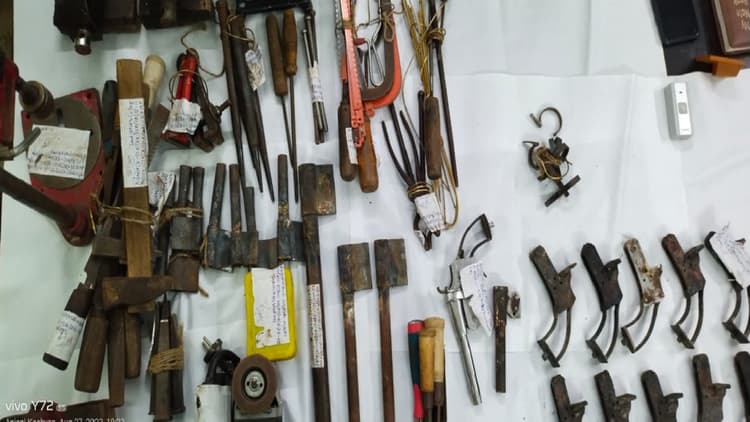 पुलिस ने मौके पर से भारी मात्रा में हथियार बनाने का उपकरण भी बरामद किया गया. देशी कट्टा – 01 पीस, अर्द्धनिर्मित देशी कट्टा का बट – 10 पीस, एक बैरल बड़ा, बैरल अर्द्धनिर्मित ( मध्यम ) – 02 पीस, ट्रिगर गार्ड-08 पीस, बैरल अर्द्धनिर्मित (छोटा) – 8 पीस, एक मिस फायर गोली, छोटा छेनी-5 पीस, लोहे का छोटा नोकिला टुकड़ा (खासा ), इलेक्ट्रीक ग्रेन्डर-2 पीस, हथौड़ा -2 पीस, सरसी-2 पीस, लोहा का लिहार- 1 पीस, ग्रेन्डर मशीन का ब्रश-5 पीस बरामद किया गया.