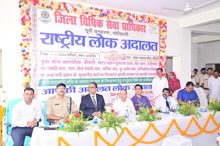 मोतिहारी.सुलह-समझौते से मुकदमे के निबटारे में ही दोनों पक्षों की भलाई है. अनावश्यक मुकदमे बाजी से समय और पैसे की बर्बादी के साथ ही आपसी संबंध भी बिगड़ जाता है. विकास बाधित होता है. उक्त बातें शनिवार को न्यायालय परिसर में आयोजित राष्ट्रीय लोक अदालत कार्यक्रम के उद्घाटन अवसर पर वक्ताओं ने कही. कार्यक्रम का उद्घाटन जिला एवं सत्र न्यायाधीश देवराज त्रिपाठी, डीएम सौरभ जोरवाल, पुलिस अधीक्षक कांतेश मिश्रा, प्रधान न्यायाधीश संदीप कुमार सिंह एवं विधिक संघ के महासचिव नरेंद्र देव एवं सेंट्रल बैंक के क्षेत्रीय प्रबंधक एवं अधिवक्ता राजीव द्विवेदी ने संयुक्त रूप से दीप प्रज्वलित कर किया. इस दौरान गठित बेंचों द्वारा 2211 मामलों का निष्पादन समझौता के आधार पर किया गया. जिसमें 746 मामले न्यायालय से संबंधित 47 मामले क्लेम एवं 1402 बैक तथा 17 मामले बीएसएनएल से सम्बंधित थे. इस दौरान आठ करोड़ से अधिक मामले सेटल हुए. कार्यक्रम का संचालन डीएलएस के सचिव राजेश दुबे एवं दंडाधिकारी गौरव कुमार सिंह तथा धन्यवाद ज्ञापन प्रधान न्यायाधीश संदीप सिंह ने किया. इस अवसर पर सभी न्यायिक पदाधिकारी, अधिवक्ता ,पक्षकार एवं न्यायालय कर्मी उपस्थित थे. निपटारे के का अधिकाधिक लक्ष्य को प्राप्त करने के लिए प्रधान न्यायाधीश संदीप कुमार सिंह विशेष न्यायाधीश मुकुंद कुमार सूर्यकांत तिवारी एवं अन्य न्यायिक प्राधिकारी एवं अधिवक्ता गणों को शामिल कर 18 न्यायिकपीठों का गठन मोतिहारी स्थित न्यायालय परिसर में तथा विवेक कुमार उपाध्याय मुंसिफ तथा न्यायालय दंडाधिकारी विनीत कुमार सिंह के नेतृत्व में दो पीठ सिकरहना मुख्यालय ढाका में तथा अरेराज अनुमंडल मुख्यालय कोर्ट में अपर न्यायाधीश मनीष कुमार पांडे के नेतृत्व में तीन सदस्यीय एक कोर्ट का गठन किया गया था. लोक अदालत में बैक अधिकारी प्रफुल्ल कुमार झा संजीव कुमार सिंह अधिवक्ता ओमप्रकाश आदि थे.
