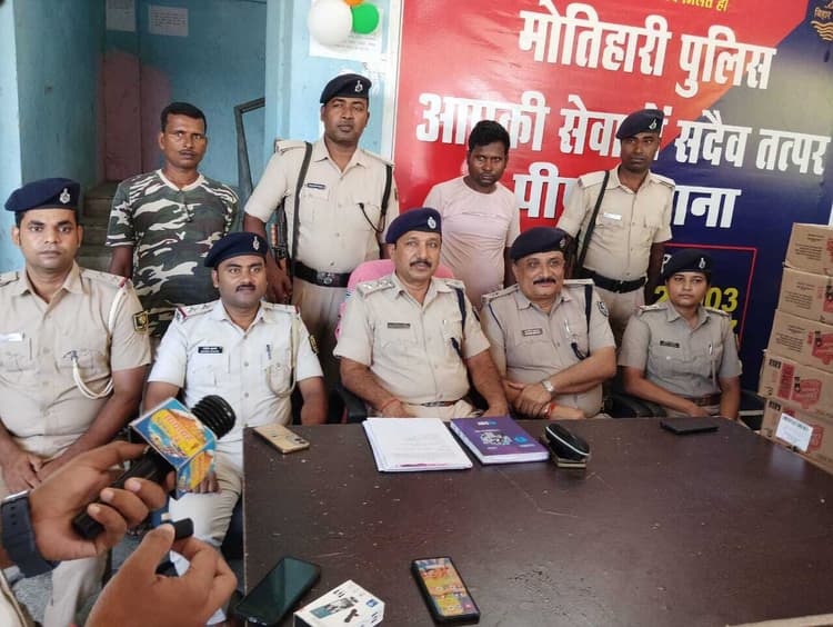 पिपरा. स्थानीय पुलिस ने गुप्त सुचना के आधार पर मंगलवार की देर रात थाना क्षेत्र के रामगढवा गांव के एक होटल के समीप एन एच 28 पर छापेमारी कर एक ट्क से ले जा रहे भारी मात्रा में अंग्रेजी शराब बरामद किया है. साथ ही ट्रक व चालक को गिरफ्तार कर लिया गया. गिरफ्तार चालक बैशाली जिला अंतर्गत लालगंज थाना क्षेत्र के पुरैना गांव निवासी भगवान लाल सहनी है .बरामद शराब मे 233 पेटी ऑफिसर च्वाइस फूटी अंग्रेजी शराब 2013.12 लीटर बरामद है. इस संबंध में प्रेस वार्ता के दौरान चकिया डीएसपी संतोष कुमार ने बताया कि पुलिस अधीक्षक के निर्देश पर टीम गठित कर छापेमारी की गयी. बताया की मामले की जांच किया जा रहा है. छापेमारी का नेतृत्व चकिया डीएसपी संतोष कुमार कर रहे थे. मौके पर अंचल निरिक्षक चकिया पुनि अरबिंद कुमार, पुअनि सतीश कुमार, पुअनि पुषकर कुमार तथा पिपरा थाना रिजर्व गार्ड शामिल थे.