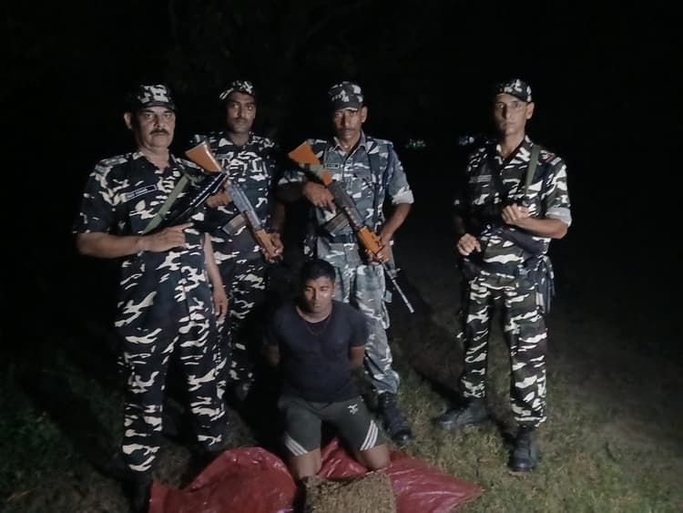 Motihari: सिकरहना. गुआबारी बीओपी के जवानों ने सोमवार की रात भारत नेपाल सीमा क्षेत्र के पिलर संख्या संख्या 347/1 के समीप से 4.300 किलो गांजा के साथ एक तस्कर को गिरफ्तार किया हैं. पकड़ा गया आरोपी सुरज साह नेपाल के रौतहट जिलान्तर्गत बंजारहा का रहने वाला हैं. एसएसबी के उपनिरीक्षक राजकुमार ने बताया कि सूचना मिली थी कि एक व्यक्ति नेपाल से गांजा लेकर भारतीय क्षेत्र में किसी दूसरे व्यक्ति को देने वाला हैं. सूचना के आधार पर पिलर संख्या 347/1 हीरापुर गांव के आसपास जवानों के साथ स्पेशल नाका ड्यूटी लगा कर निगरानी बढ़ाई गई तो रात्रि 2 बजे एक व्यक्ति नेपाल से भारत में आता हुआ दिखाई दिया. नजदीक में आया तो नाका पार्टी के द्वारा उस व्यक्ति को पकड़ लिया गया.उसके हाथ में एक काले रंग का थैला था.थैला में गांजा मिला जिसका वजन 04 किलो 300 ग्राम पाया गया.पूछताछ में सुरज ने बताया कि ये गांजा बंजारहा निवासी भोला पटेल से लेकर आ रहा था जिसे एक दूसरे व्यक्ति को सौंपना था. उपनिरीक्षक राजकुमार ने बताया कि कार्रवाई के लिए बरामद गांजा एवं आरोपी को कुंडवाचैनपुर पुलिस के हवाले कर दिया गया हैं.