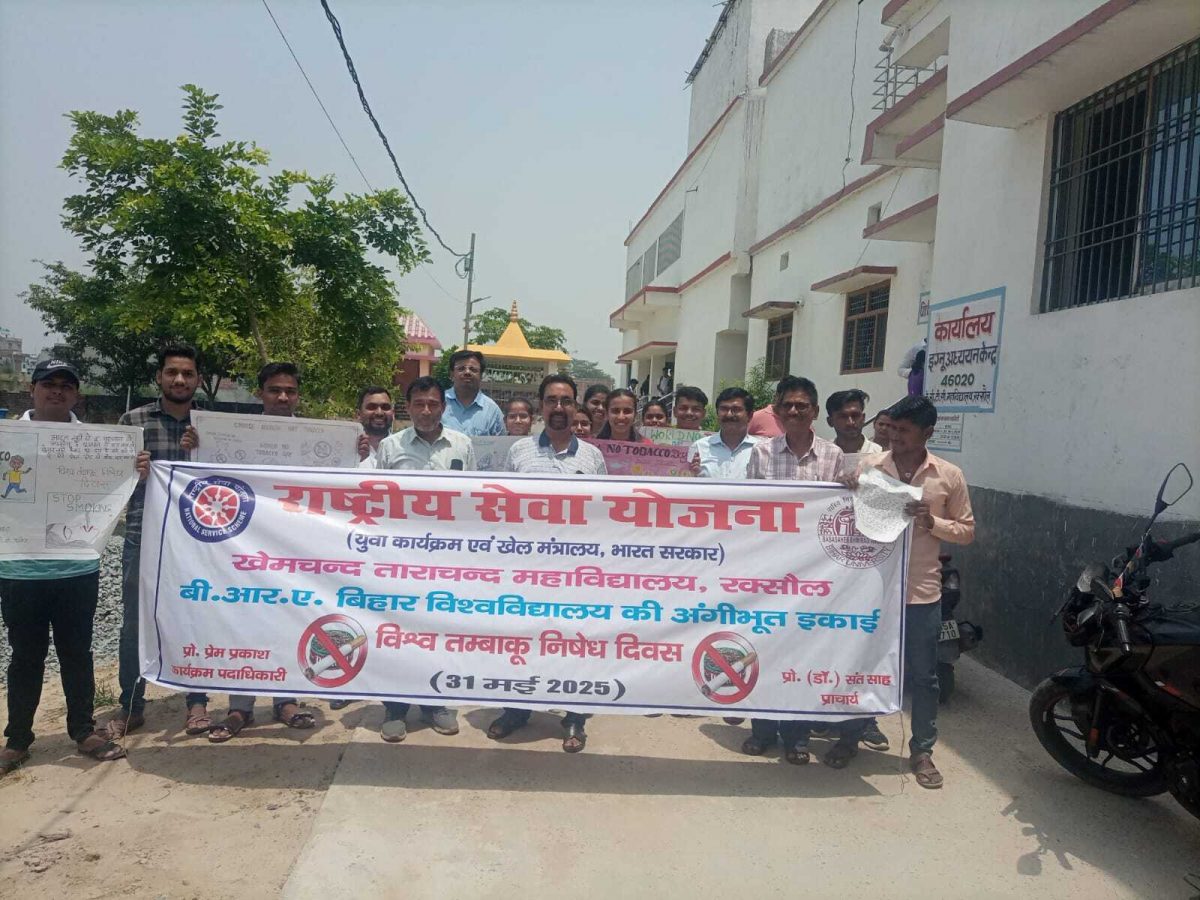 राष्ट्रीय सेवा योजना (एनएसएस) के द्वारा आयोजित एक कार्यक्रम के तहत विश्व तंबाकू निषेध दिवस पर जागरूकता रैली निकाली गयी.