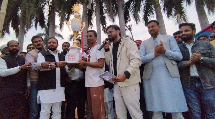 घोड़ासहन. चंपारण किसान फाउंडेशन के संस्थापक अध्यक्ष प्रकाश सिंह काका द्वारा आयोजित व नवयुवक दुर्गा क्रिकेट क्लब के तत्वावधान में प्रखंड के भेलवा हाई स्कूल के खेल मैदान में टी 20 क्रिकेट टूर्नामेंट के फाइनल मुकाबला स्टूडेंट्स क्रिकेट क्लब बिशम्भरपुर व नवयुवक दुर्गा क्रिकेट क्लब भेलवा के बीच खेला गया. जिसमे टॉस जीतकर कर बिशम्भरपुर की टीम ने पहले बल्लेबाजी करते निर्धारित 20 ओवर में सभी विकेट खोकर 139 रन का स्कोर बनाया. बिशम्भरपुर की ओर से जफरे आलम ने आतिशी पारी खेलते हुए 57 गेंदों पर 89 रन का स्कोर बनाया. जिसमे 11 छक्के व 1 चौका शामिल है. वहीं भेलवा की ओर से सुरेश सरैया ने 33 रन देकर 5 विकेट हासिल किया. जवाब में भेलवा की टीम ने 140 रन का लक्ष्य का पीछा करते 19.1 ओवर में 8 विकेट खोकर प्राप्त कर लिया. इस तरह भेलवा की टीम ने बिशम्भरपुर को दो विकेट से हरा विजयी ट्रॉफी पर कब्जा जमाया. टूर्नामेंट में मुख्य अतिथि के रूप में पहुंचे ढाका विधायक पवन जयसवाल द्वारा विजेता टीम व रनर टीम को ट्रॉफी प्रदान कर उनका उत्साहवर्धन किया गया. अवसर पर विधायक श्री जयसवाल ने कहा कि खेलकूद जीवन में अनेक उत्तम गुणों का विकास करता है. खेलों से शरीर चुस्त, फुर्तीला एवं बलिष्ठ होता है. विधायक ने कहा- हार जीत की परवाह किए बगैर खेलना चाहिए. उन्होंने आगे कहा कि खेल में हार-जीत कोई मायने नहीं रखती है, बल्कि हारने वाले को भविष्य में जीतने की प्रेरणा मिलती है. हार जीत की परवाह किए बगैर खेलना चाहिए. खेलकूद के जरिये खिलाड़ियों में सामूहिक खेलकूद की भावना का विकास होता है. आप लोग ईमानदारी खेलें और अपने गांव, पंचायत और जिले का नाम रोशन करें. फाइनल मुकाबले में मैन ऑफ द मैच का अवार्ड भेलवा टीम सुरेश सरैया को व मैन ऑफ द सीरीज का अवार्ड बिशम्भरपुर के जफरे आलम की दिया गया. मौके पर प्रमुख प्रतिनिधि भोला यादव, पूर्व मुखिया प्रभात सिंह काका, जदयू नेता गुड्डू आलम, भाजपा मंडल अध्यक्ष अमित सिंह सहित हजारों दर्शकों की भीड़ रही