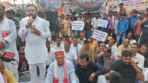 पीएम मोदी के मां के लिए अभद्र शब्दों का प्रयोग किये जाने के विरोध में शनिवार की शाम ढाका गांधी चौक पर भाजपा विधायकों एवं कार्यकर्ताओं द्वारा कुछ समय के लिए धरना देकर विरोध जताया गया.