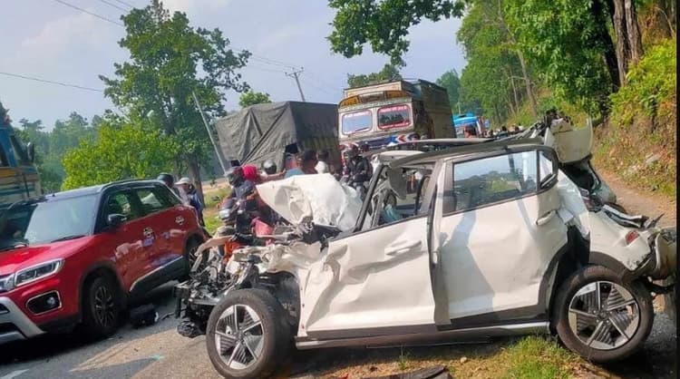 Motihari: रक्सौल : नेपाल के मकवानपुर हेटौड़ा उपमहानगरपालिका के वार्ड नंबर 15 ड्राईभर डाडा इलाके में शनिवार की दोपहर बस का ब्रेक फेल होने से हुए हादसे में 10 लोग घायल हो गये. जिला पुलिस कार्यालय मकवानपुर से मिली जानकारी के अनुसार शनिवार को करीब 3 बजकर 20 मिनट पर वीरगंज से हेटौड़ा के तरफ जा रही ना4ख-2970 नंबर की यात्री वाहक बस का ब्रेक फेल हो गया था. जिसके बाद बस में विपरीत दिशा से आ रही एक ऑन टेस्ट कार को ठोकर मार दी. इसी दौरान बस के आगे चल रहे एक टैंकर से भी बस टकरा गयी. अलग-अलग वाहनों में ठोकर मारने के बाद भी बस लगभग 100 मीटर आगे बढ़कर सड़क के किनारे एक पेड़ से टकरा कर रूकी. इस पूरे हादसे में बस में सवार 4, कार में सवार 6 सहित कुल 10 लोग घायल हुए है, जिनको उपचार के लिए हेटौड़ा अस्पताल में भर्ती कराया गया है. घायलों में 6 की अवस्था मध्यम जबकि 4 घायलों की अवस्था सामान्य है. इस हादसे में कार को अधिक क्षति हुई है, जबकि टैंकर का पीछे का भाग क्षतिग्रस्त हो गया है.