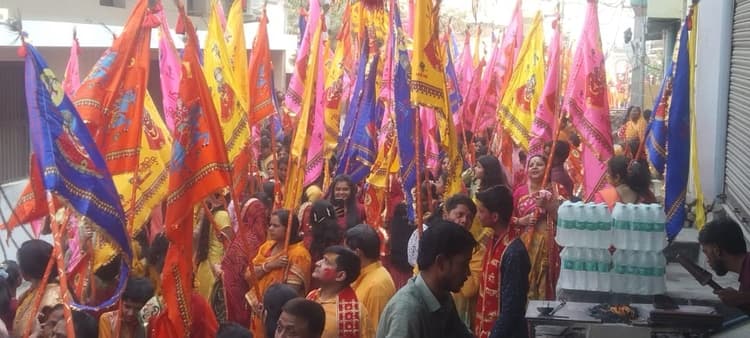 श्री श्याम फाल्गुन महोत्सव का रंगारंग आगाज प्रतिनिधि,चकिया श्री श्याम परिवार चकिया की ओर से आयोजित तीसरे श्री श्याम फाल्गुन महोत्सव का रंगारंग आगाज सोमवार को भव्य ध्वजा निशानयात्रा के साथ हुआ. शोभायात्रा में सैकड़ों की संख्या में निशान यात्री शामिल हुए. स्थानीय मारवाड़ी धर्मशाला परिसर स्थित प्रस्तावित श्याम मंदिर से निकली यह निशान शोभायात्रा शहर में जहां-जहां से गुजरी वहां माहौल श्याममय हो गया. निशान यात्रा में शामिल श्रद्धालु खाटू वाले बाबा श्याम के रंग में रंगे दिखाई दिए. निशान यात्रा में शामिल श्रद्धालु राजस्थानी परिधान में काफ़ी आकर्षक दिखाई दे रहे थे. इस दौरान पूरा शहर जय श्री श्याम के जयकारों से गूंजायमान हो गया. निशान यात्रा के दौरान शहरवासियों ने जगह-जगह फूल बरसाए और श्याम बाबा की आरती उतारी. इसके पूर्व श्रद्धालुओं ने पं ओमप्रकाश शर्मा के सानिध्य में विधि-विधान से पूजन कर निशान उठाया. श्याम परिवार के सूत्रों ने बताया कि इस बार 1000 से ज्यादा निशान यात्री निशान यात्रा में शामिल हुए.यह शोभायात्रा केसरिया रोड, सुभाष चौक, मोतिहारी रोड,पावर हाउस चौक, साहेबगंज रोड,राणीसती मंदिर,पुराना पोस्ट आफिस रोड होते हुए मारवाड़ी धर्मशाला पहुंच संपन्न हुई.जहां सभी निशान को बाबा के चरणों में अर्पित किया गया. इस मौके पर श्याम परिवार की तरफ से कढ़ी-कचौड़ी और इमरती के महाप्रसाद की भी व्यवस्था की गई थी. सोमवार संध्या ज्योत-भजन, फूलों की होली तथा महाप्रसाद का आयोजन किया जाएगा.जिसके बाद शयन आरती के साथ महोत्सव का समापन होगा. निशान यात्रा को लेकर प्रशासन भी चुस्त-दुरुस्त दिखाई दिया.