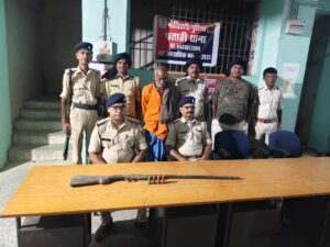 जिहुली गांव में पुलिस ने पकड़ीदयाल डीएसपी कुमार चंदन के नेतृत्व में छापेमारी कर एक कुख्यात डकैत को एकनली बंदूक एवं चार कारतूस के साथ गिरफ्तार किया है.