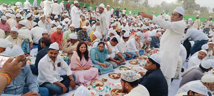 केसरिया. -रमजान के पवित्र माह में दावत-ए- इफ्तार का दौर जारी है. सामाजिक क्षेत्रों के साथ राजनीतिक व धार्मिक संगठनों से जुड़े लोग दावत-ए- इफ्तार का आयोजन कर रहे हैं और आपसी सद्भाव का संदेश समाज को दे रहे हैं. इसी कड़ी में प्रखंड प्रमुख आलिया प्रवीण के सौजन्य से उनके बैरिया स्थित आवास पर दावत-ए- इफ्तार का आयोजन किया गया.जदयू विधायक शालिनी मिश्रा ने कहा कि सामाजिक एकता व आपसी सद्भाव के लिए दावत-ए- इफ्तार जरूरी है. समाज में भाईचारे और एकता को भी बढ़ावा देना है. मौके पर प्रमुखपति नाज अहमद खान उर्फ पप्पू खान ने रोजेदारों का स्वागत किया और कहा कि यह आयोजन आपसी भाईचारगी का पैगाम है. मौके पर पूर्व मुखिया मुन्ना खान, जदयु जिला उपाध्यक्ष श्रीकांत सिंह, पूर्व मुखिया हेमंत कुमार सिंह, पंचस व शिक्षा समिति के अध्यक्ष दुष्यंत कुमार सिंह उर्फ राजु सिंह, पूर्व मुखिया गुडु खान, जदयू प्रखंड अध्यक्ष मो इशाक आजाद, अशोक कुमार सिंह, पिन्टु राम, साजिद खान, जन सुराज के जिलाध्यक्ष रामशरण यादव,नरेंद्र कुमार यादव,उपप्रमुख आनंद सिंह, पूनयोज अहमद खा,अरशे आलम,मो. नज्जू, मो.अलताफ, साकिर खान व नसीम अली खान समेत बड़ी संख्या में लोग मौजूद थे.