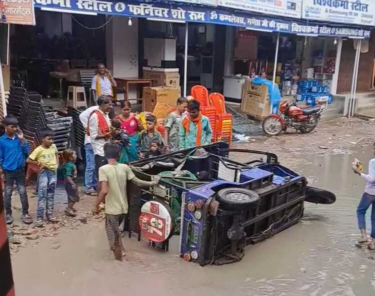 मधुबन . मलंग चौक से गांधीनगर चौक तक जाने वाली सिनेमा हाल रोड में बारिश व जर्जर सड़क पर शनिवार को एक ई-रिक्शा अचानक पलट गई.जिसमें महिला व बच्चे सवार थे.सड़क की हालत इतनी बदतर है कि उक्त में पैदल चलना भी मुश्किल हो रहा है.जलजमाव के कारण सड़क पूरी तरह से क्षतिग्रस्त हो चुकी है.स्थानीय लोगों की तत्परता से पलटी ई-रिक्शा को खड़ा किया.ई-रिक्शा में सवार महिला व बच्चों के साथ चालक को बाहर निकाला गया.जिन्हें हल्की चोटें आयीं है.स्थानीय लोगों ने प्रशासन व सरकार से उक्त सड़क के निर्माण के साथ ही सड़क के किनारे नाला निर्माण की मांग की है.