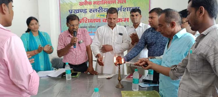 मधुबन. प्रखंड कार्यालय स्थित सभागार भवन में प्रखंड स्तरीय खरीफ महोत्सव कार्यक्रम का अयोजन किया गया.इस कार्यक्रम का विधिवत उद्घाटन प्रखंड पंचायत राज पदाधिकरी पुरुषोत्तम कुमार,प्रखंड कृषि पदाधिकारी प्रभात एवं किसान उदयशंकर गुप्ता के द्वारा संयुक्त रूप से किया गया.कार्यक्रम के माध्यम से किसानों को कृषि समन्वयक शिवांगी आनंद ने कृषि विभाग द्वारा संचालित होने वाले योजनाओं जैसे मिलेट्स (मोटे अनाज)प्रत्यक्षण मडुआ 26 एकड़,बाजरा 27 एकड़,मक्का प्रतिक्षण 75 एकड़,मक्का अनुदानित कलस्टर 8 कुल 224 एकड़ हेतु लक्ष्य प्राप्त हुआ हैं.इस कार्यक्रम के लिये राजस्व ग्राम एवं पंचायत का चयन किया जा चुका है.कृषि समन्वयक आलोक कुमार श्रीवास्तव के द्वारा समेकित कृषि प्रणाली अंतर्गत फसल हेतु खेतों की तैयारी से भंडारण तक की कार्यों को विधिवत जानकारी दिया. किसान एंड्रोवाइड मोबाइल में ऐप गूगल प्ले स्टोर से इंस्टॉल कर इस एप से कृषि विभाग के सभी योजानाओं हेतु आवेदन खुद कर सकते हैं.बीएओ प्रभात ने जलवायु व मौसम परिवर्तन के बीच किसानों धान के साथ ऊंचे स्थान पर मक्के की खेती करने पर जोर दिया. मौके पर राजीव रंजन,अनिल कुमार,रणविजय सिंह, देवाश्री कुमारी महतो,रमेश कुमार यादव, अतुल कुमार,फिरोज आलम,भाग्यनारायण शर्मा,अरुण कुमार शर्मा,फिरोज अंसारी,कमलेश कुमारअंसार मिया,रविरंजन सिंह,रामचंद्र राय,मदन पंडित,समसुद्दीन मिया,रामचंद्र साह मौजूद थे.