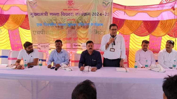 पहाड़पुर. प्रखंड के बलुआ पंचायत भवन में बिहार सरकार और एचपीसीएल सुगौली के संयुक्त तत्वाधान में मुख्यमंत्री गन्ना विकास योजना के अंतर्गत एक दिवसीय कृषक प्रशिक्षण कार्यक्रम का आयोजन किया गया. जिसमें लगभग 200 किसानों को गन्ने की नवीनतम प्रणाली से प्रशिक्षित किया गया. इस कार्यक्रम में डॉक्टर राजेंद्र कृषि विश्वविद्यालय पूसा के क्षेत्रीय अनुसंधान केंद्र माधोपुर के वैज्ञानिक डॉ सतीश चंद्र और सौरभ दुबे द्वारा कृषकों को गन्ने की प्रजातियां एवं कीट रोग प्रबंधन विषय पर प्रशिक्षित किया गया. वहीं एचपीसीएल सुगौली के महाप्रबंधक विजय कुमार दीक्षित ने किसानों को आश्वस्त किया कि आगामी पेराई सत्र 2024-25 का परिचालन समय से किया जाएगा. किसानों का गन्ना मूल्य भुगतान भी समय पर होगा. मिल अपनी पूरी क्षमता से गन्ने की पेराई करेगी . इसलिए किसान भाई अधिक से अधिक क्षेत्रफल में गन्ना लगाए और अपना गन्ना अन्यत्र किसी दूसरी चीनी मिल में नहीं दें. गन्ना प्रबंधक संजीव कुमार ने उपस्थित किसानों को अंतर्वर्ती खेती करने, गन्ने के बीज उपचार और बिहार सरकार द्वारा चलाई जा रही योजनाओं के बारे में विस्तार पूर्वक बताया.गन्ना अधिकारी संतोष तिवारी एवं अजय शर्मा ने भी किसान भाइयों को आगामी शरद कालीन गन्ना बुवाई के लिए दो लाइनों के बीच की दूरी को बढ़ाने और दो आंख के टुकड़ों की बुवाई करने पर जोर देते हुए अन्य संबंधित जानकारी को साझा किया. इस गोष्ठी में क्षेत्रीय कर्मियों के साथ-साथ कृषकों में राम बाबू मिश्रा, मुन्ना मिश्रा, वशिष्ठ सिंह, मनी चंद तिवारी, अभय सिंह, बलिराम सिंह, उपेंद्र सिंह, राजेंद्र राम सहित 200 किसानों ने प्रशिक्षण शिविर में भाग लिया.