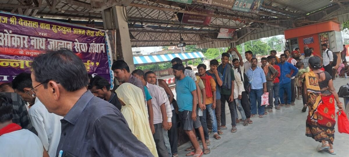 Motihari: बापूधाम रेलवे स्टेशन पर जरूरतमंदों को कराया गया भोजन