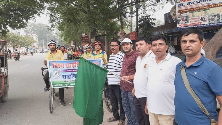Motihari: मोतिहारी . विश्व साइकिल दिवस के अवसर पर मंगलवार को पूर्वी चंपारण जिला साइक्लिंग संघ द्वारा साइकिल रैली निकाली गई. स्थानीय गांधी स्मारक के सामने साइकिल रैली को मुजीब गर्ल्स प्लस टू स्कूल प्रधानाध्यापक राजकुमार चौधरी, मंगल सेमिनरी प्लस टू स्कूल के प्रधानाध्यापक डाॅ उमेश कुमार, प्रभावती गुप्ता प्लस टू स्कूल के प्रधानाध्यापक जावेद अख्तर खान ने हरी झंडी दिखाकर रवाना किया. इसके बाद साइकिल रैली स्टेशन रोड, जानपुल चौक होते हुए ज्ञानबाबू चौक पहुंचकर समाप्त हुई. रैली के दौरान खिलाड़ियों ने पर्यावरण को सुरक्षित रखने, बेहतर स्वास्थ्य के लिए साइकिल चलाने पर जोर दिया और नारे लगाए. रैली को रवाना करने के दौरान मुजीब गर्ल्स स्कूल के शिक्षक डॉक्टर सुनील सिंह, शिक्षक जितेन्द्र यादव, लिपिक रंजीत कुमार, बीआरपी शकील अहमद जिला साइक्लिंग संघ के सचिव सिद्धार्थ वर्मा सहित कई साइक्लिस्ट व छात्र-छात्राएं मौजूद थे.