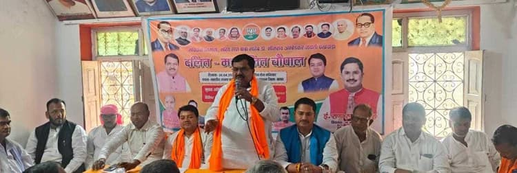 Motihari: मधुबन.आंबेडकर जयंती पखवाड़े के अवसर पर शनिवार को भाजपा कार्यालय में दलित-महादलित चौपाल का आयोजन किया गया.जिसकी अध्यक्षता सांगठनिक जिला ढाका के अनूसूचित जाति मोर्चा के जिलाध्यक्ष किशोरी बैठा ने किया. चौपाल को संबोधित करते हुए बिहार सरकार के गन्ना मंत्री कृष्णनंदन पासवान ने कहा कि केंद्र व राज्य सरकार के द्वारा दलित व महादलित समाज के विकास के लिये सरकार काम कर रही है. केंद्र की मोदी सरकार के दलित समाज के उत्थान के लिये वह काम कर ही है,जो कभी कांग्रेस की सरकार में नहीं किया गया था. विधायक सह पूर्व सहकारिता मंत्री राणा रणधीर सिंह ने कहा कि कांग्रेस के द्वारा बाबा साहेब का अपमान किया गया. भाजपा ने दलित व महादलित समाज को सम्मान देने के साथ समाज के अग्रणी पंक्ति में शामिल किया है. विधायक ने कहा कि मुस्लिम लीग के साथ होकर पाकिस्तान गये योगेन्द्र नाथ मंडल ने दलित समाज को गुमराह करने का किया.बशर्ते वे पाकिस्तान के कानून मंत्री बने. आगे वे पाकिस्तान में इस कदर प्रताड़ित किये गये कि जिन्ना की मौत के बाद 8 अक्टूबर 1950 को मंत्रीमंडल से त्यागपत्र देकर वापस भारत लौटना पड़ा. कार्यक्रम को बथनाहां विधायक अनिल कुमार समेत अन्य वक्ताओं ने संबोधित किया.कार्यक्रम का संचालन सेवानिवृत्त शिक्षक छठू राम ने किया.