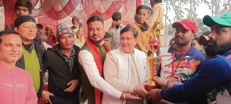 हरसिद्धि. स्वर्गीय महावीर प्रसाद टी-20 क्रिकेट टूर्नामेंट का फाइनल मुकाबला सोमवार को गांधी उच्च माध्यमिक विद्यालय के खेल मैदान में अरेराज और हरसिद्धि के बीच खेला गया. क्रिकेट खेल मुकाबले में हरसिद्धि की टीम ने अरेराज को 4 विकेट से पराजित कर ट्रॉफी अपने नाम किया. टॉस जीतकर पहले बल्लेबाजी करने का निर्णय अरेराज की टीम लिया. बल्लेबाजी करते हुए निर्धारित ओवरों में 127 रन बनाकर ऑलआउट हो गई, हरसिद्धि की ओर से सचिन कुमार ने शानदार प्रदर्शन करते हुए 31 रन बनाए और 2 विकेट भी लिया. लक्ष्य का पीछा करने उतरी हरसिद्धि की टीम ने 17 ओवर में 128 रन बनाकर मुकाबला अपने नाम किया. मुख्य अतिथि भाजपा जिला उपाध्यक्ष इंजीनियर राकेश कुमार गुप्ता ने विजेता टीम को शील्ड प्रदान कर सम्मानित किया. वहीं भाजपा मंडल अध्यक्ष निकेश सिंह चौहान ने मैन ऑफ द मैच का पुरस्कार सचिन कुमार को प्रदान किया. मैन ऑफ द सीरीज का खिताब भी मुख्य अतिथि इंजीनियर राकेश कुमार गुप्ता ने सचिन को प्रदान किया, मैच में अंपायर की भूमिका संदीप वर्मा एवं दीपक अग्रवाल ने निभाई, जबकि कमेंट्री डॉ. नवनीत कुमार और सुजीत कुमार ने की, मैच को देखने के लिए सैकड़ो संख्या में लोग उपस्थित थे.