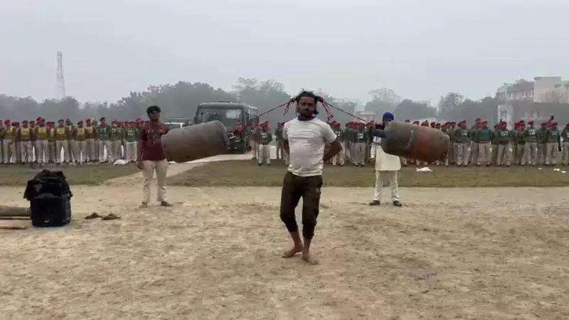 मोतिहारी : अगर कुछ करने का हौसला और हिम्मत हो तो पहाड़ों को भी तोड़कर रास्ता बनाया जा सकता है. कुछ ऐसा ही नासिक के रहने वाले मोहम्मद अब्दुल कर रहे हैं. मोतिहारी में अपने पूरे परिवार के साथ पहुंचकर दांतों से गाड़ी को खींच रहे हैं. मोतिहारी पुलिस लाइन में पहुंचे मोहम्मद अब्दुल अपने नाती व पोतों के साथ करतब दिखाकर पुलिसकर्मियों को प्रेरित भी किया हैं. साथ ही एक पुलिसकर्मी पुलिस लाइन में अपनी जिप्सी को दांतों से खींचते हुए दिखाई दिए. एक कलाकार बालों से सिलेंडर उठाकर उसे पूरा घुमाया वहीं एक कलाकार बालों से सिलेंडर को उठाकर उसे घूमा रहे हैं. बालों से बिहार पुलिस की बड़ी बसों को खींच रहे हैं. वही अब्दुल ने कहा कि मेरा पूरा परिवार इस कला को बचाए रखा है और बचपन से हमलोग करतब दिखाकर लोगों का मनोरंजन कर अपने परिवार को चलाते हैं. अब्दुल के बेटे मोहम्मद जावेद जो बालों से मोतिहारी पुलिस की बड़ी बसों को खींचा,कहा कि हमलोग बचपन से इसकी ट्रेनिंग लेते आए हैं. मोहम्मद जावेद ने कहा कि हमलोग बचपन से इसकी ट्रेनिंग लेते आए हैं. जिसका नतीजा है कि बालों से बसों को खींच रहे हैं. दांतों से सिलेंडर को उठा रहे हैं और कर्तव्य दिखाकर लोगों का मनोरंजन कर रहे हैं.