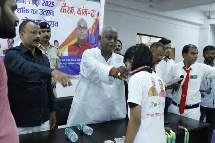 Motihari: मोतिहारी . खेल भवन में एक सितंबर से दो अक्तूबर तक सांसद खेल महोत्सव के तहत चलने वाले इनडोर खेलों का उद्घाटन शनिवार को विधायक प्रमोद कुमार व जिला खेल पदाधिकारी शुभम कुमार ने संयुक्त रूप से किया. इनडोर गेम में तलवारबाजी, कैरम, थांग टा खेलों की स्पर्धा होनी है. पहले दिन थांग टा मार्शल आर्ट खेल में जिला स्तरीय विभिन्न विद्यालयों से आये हुए बच्चों की सहभागिता रही. प्रतिस्पर्धा में स्वर्ण पदक विजेता खिलाड़ियों में इशानी कुमारी, अन्नया कुमारी, साजिया जैस्मीन, आफरीन परवीन, रूपिका कुमारी, दिव्या कुमारी और दीक्षा प्रिया है. रजत पदक विजेता खिलाड़ियों में आराध्य राज, अवंतिका कुमारी, सोनम कुमारी, आलिया जैस्मीन, अर्पिता कुमारी एवं आराध्य गुप्ता हैं. कांस्य पदक विजेता खिलाड़ियों में अन्वी कुमारी, संस्कृति कुमारी, अंशी कुमारी, कशिश कुमारी एवं अंजली कुमारी हैं। जिनके अतिरिक्त बहुत सारे लड़कों ने भी अच्छा अपना प्रदर्शन प्रस्तुत किया. उक्त अवसर पर थांग-टा संघ के जिला अध्यक्ष साजिद रजा, सचिव अशफाक अहमद, कबड्डी संघ के सचिव भानु जी, एथेलेटिक्स संघ के सचिव अरविन्द कुमार, आशीष कुमार, थांग टा संघ के सयुक्त सचिव अमित सिंह सहित अन्य लोग उपस्थित थे।