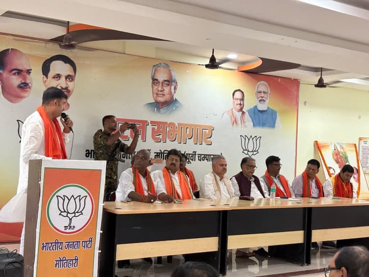Motihari: मोतिहारी . सदर प्रखंड के चन्द्रहिया स्थित भाजपा कार्यालय में मोतिहारी विधानसभा की संगठनात्मक बैठक जिलाध्यक्ष पवन राज की अध्यक्षता में शुक्रवार को आयोजित हुई. संचालन विधानसभा संयोजक ओम प्रकाश सिंह ने की. उक्त बैठक में मध्यप्रदेश एवं छत्तीसगढ़ में संगठन महामंत्री अजय जामवाल एवं सांसद पूर्व केंद्रीय कृषि एवं किसान कल्याण मंत्री राधा मोहन सिंह भी उपस्थित थे. बैठक में संगठन महामंत्री अजय जामवाल ने आगामी कार्यक्रमों के बारे में विस्तृत जानकारी दी. उक्त अवसर पर प्रदेश महामंत्री शिवेश राम, प्रदेश उपाध्यक्ष सरोज रंजन पटेल, प्रदेश मंत्री अजय यादव, विधायक प्रमोद कुमार, पूर्व जिला अध्यक्ष प्रकाश अस्थाना, उप महापौर डॉ० लालबाबू प्रसाद सहित मोतिहारी विधानसभा के सभी जिला पदाधिकारीगण, मोर्चों के अध्यक्ष एवं महामंत्री, मंडलों के अध्यक्ष एवं प्रभारियों के साथ सभी शक्ति केंद्र प्रमुख उपस्थित थे.