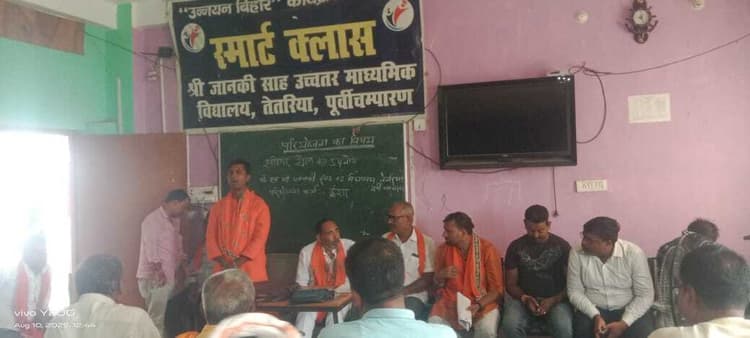 मधुबन . तेतरिया प्रखंड मुख्यालय स्थित जानकी साह उच्च माध्यमिक विद्यालय के स्मार्ट क्लास में रविवार को भाजपा का मंडल स्तरीय कार्यशाला आयोजित की गयी.जिसकी अध्यक्षता मंडल अध्यक्ष कन्हैया प्रसाद गुप्ता ने किया.बैठक में बूथ कैसे मजबूत हो इस पर विशेष चर्चा हुई.बूथ जीतो चुनाव जीतो के नीति बनाई गयी.बैठक को संबोधित करते हुए पीपरा विधायक श्यामबाबू यादव ने केंद्र व राज्य सरकार के द्वारा किये गये विकास कार्यों के बारे में कार्यकर्ताओं को विस्तार पूर्वक जानकारी दी.इसके साथ वे अपने विधायकी के दौरान क्षेत्र में हुए विकास में बारे विस्तार पूर्वक जानकारी दी.विधायक ने कहा कि भाजपा सभी वर्गों को साथ लेकर चलने वाली पार्टी है.पीएम नरेंद्र मोदी के नेतृत्व में देश का विकास तीव्र गति से हो रहा है.पीएम के विजन का असर है साफ है.राजेपुर व तेतरिया इलाके में विकास की रफ्तार तेज हुई है.कार्यकर्ताओं से आगामी विधानसभा चुनाव में की तैयारी में जुट जाने का आह्वान किया.मौके पर प्रखंड प्रमुख विनय कुमार यादव, विधानसभा विस्तारक आतीश शर्मा,प्रभारी अजय उपाध्याय, संदीप साल्वी,लल्लू सिंह,विद्याकांत राय, बबलू यादव,नवीन कुमार, संतोष कुमार व राजकिशोर प्रसाद समेत सभी पंचायत अध्यक्ष व पार्टी के प्रखंड स्तरीय पदाधिकारी मौजूद थे.