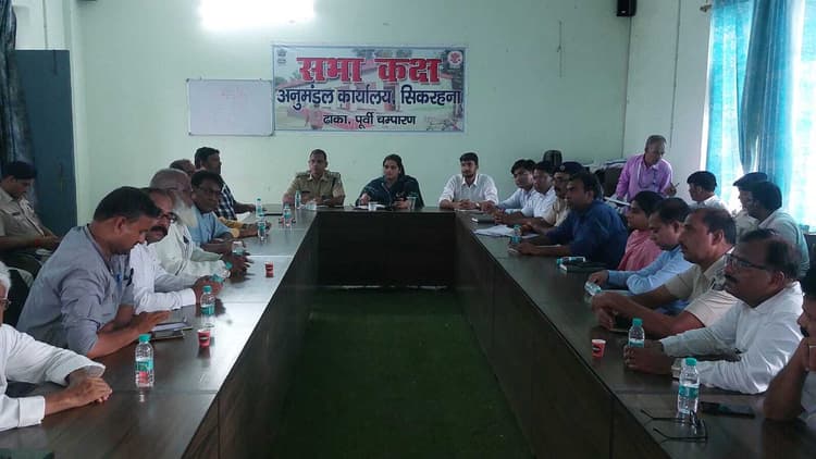 सिकरहना.महावीरी झंडा जुलूस को लेकर गुरुवार को ढाका स्थित अनुमंडलीय सभागार में अनुमंडल स्तरीय शांति समिति की बैठक एसडीओ निशा की अध्यक्षता में हुई. बैठक में झंडा जुलूस पर विधि व्यवस्था एवं शांति सौहार्द कायम रहे इस पर व्यापक विचार विमर्श व चर्चा की गयी. इस दौरान उपस्थित सदस्यों ने अपने-अपने विचारों एवं सुझावों से प्रशासन को अवगत कराया. एसडीओ ने कहा कि हर पर्व की अपनी एक गरिमा व महत्व है. ऐसा कोई आचरण न करे कि इसकी गरिमा को ठेस पहुंचे. गरिमा टूटती है और विधि व्यवस्था की समस्या उत्पन्न होगी तो कड़ी कार्रवाई की जाएगी. शांति समिति के सदस्य समाज के नब्ज है.पर्व त्योहार के दौरान विधि व्यवस्था बनाये रखने में आप सभी शांति समिति सदस्यों का सहयोग प्रशासन को मिलता रहा है और उम्मीद है कि आगे भी मिलेता रहेगा.डीएसपी अशोक कुमार ने कहा कि पर्व के दौरान किसी तरह की अफवाहों पर ध्यान न दे. कोई बात सामने आती हैं तो पहले उसकी सच्चाई पता कर ले. प्रशासन का सहयोग ले. डीएसपी ने कहा कि गत दिनों ढाक में हुई तोड़ फोड़ व आगजनी की घटना अफवाह व झूठी बातों से हुई थी. संवेदनशील स्थानों पर दंडाधिकारी के साथ पुलिस बल की तैनाती की जाएगी. साथ ही जगह-जगह पर सीसीटीवी कैमरे लगाए जाएगें. बैठक में बीडीओ इस्माइल अंसारी, नप के इओ कमल सिंधु,सीओ सतीश कुमार सिंह, बीडीओ चिरैया रामनाथ कुमार,एसएचओ ढाका अभिनंदन कुमार सिंह, जिला पार्षद दिलीप सर्राफ, एमएलसी प्रतिनिधि आफताब आलम,जितेंद्र झा, नेक मोहम्मद,जमील अख्तर,अंजार खान,मो मोहीउद्दीन उर्फ कालू बाबू,मो नुरैन,वसी अख्तर,भागेश्वर चौधरी,आफताब आलम,लालबाबू प्रसाद,ई०किशोर कुमार,अली अख्तर उर्फ गुड्डू, शम्स तबरेज, अफरोज आलम, मो नुरैन,पपु चौधरी,डॉ सुनील सिन्हा,सुरेश सर्राफ, भागेश्वर चौधरी, डॉ तमन्ना वगैरह मौजूद थे .