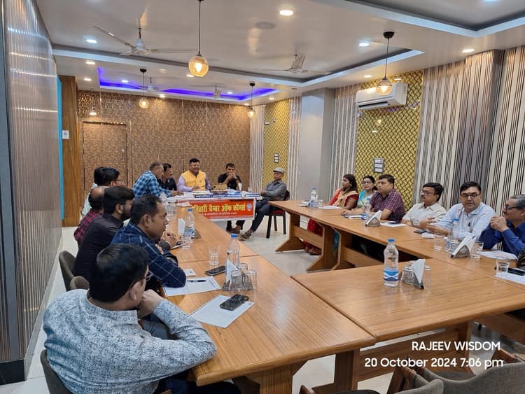 मोतिहारी. मोतिहारी चैंबर ऑफ़ कॉमर्स के 25वीं कार्यकारिणी की दसवीं बैठक होटल विजडम के सभागार में चेंबर अध्यक्ष राजीव विजडम की अध्यक्षता में आयोजित हुई सभा की शुरूवात महासचिव सुनील कुमार श्रीवास्तव ने गत बैठक के कार्यवाही की रिपोर्ट और गतिविधियों की रिपोर्ट सभा के समक्ष रखी .आय-व्यय की रिपोर्ट कोषाध्यक्ष तारकेश्वर नाथ केडिया ने रखा. बैठक में विशिष्ट आमंत्रित सदस्य नारायण सीकरिया, प्रमोद लोहिया, सीए आर्यन राज, निशा प्रकाश और रिद्धिमा का तालियो के साथ अभिनंदन करते हुए परिचय कराया गया. आगामी वर्ष के चैंबर के चुनाव की तिथी निर्धारित की गयी जो कि पुलिस व्यवसायी संवाद के दिन ही सम्पन्न होगी जिसकी तिथि 10 नवंबर है . 22 दिसम्बर को परिवार मिलन,5 जनवरी को नववर्ष की उमंग गांव के बच्चों के संघ के कार्यक्रमों की रूपरेखा तैयार की गयी. समस्त विभाग के कार्य की समीक्षा और कार्य प्रगति पे चर्चा किया गया, अध्यक्ष राजीव विजडम ने बताया मोतिहारी चैंबर सदैव तत्पर है इसके लिए चैंबर व्यावसायिक हित के लिए आने वाले पर्व त्योहार पे ई रिक्शा का रूट निर्धारण के लिए यातायात पुलिस से मिलकर चैंबर के द्वारा दिए गए सलाह पे कार्य करने के लिए कहेगा. बैठक में संयोजक मनीष कुमार. अनुपम कुमार , सुधीर अग्रवाल, रवि कृष्ण लोहिया हेमन्त कुमार आलोक कुमार आदि थे, धन्यवाद ज्ञापन सत्यव्रत जायसवाल के द्वारा किया गया जानकारी मीडिया प्रभारी सह सचिव आलोक कुमार ने दिया