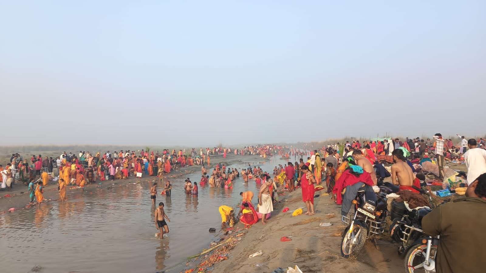 Motihari: गोविदगंज. कार्तिक पूर्णिमा के अवसर पर बुधवार को गोविंदगंज व मलाही क्षेत्र के अलग अलग नदी के घाटों पर लगभग एक लाख की संख्या में श्रद्धालुओं ने आस्था का डुबकी लगाई.साथ ही स्नान के उपरांत दान उपदान किया. ऐतिहासिक व पौराणिक गोविंदगंज व मिश्रवलिया,मलाही सहित अन्य घाटों पर मंगलवार की देर रात्रि से भक्तो की पहुंचने लगे थे, जहां बुधवार की अहले सुबह से ही श्रद्धालु नदी में स्नान कर दान उपदान कर मन्नतें मांगी. स्थानीय प्रशासन द्वारा सुरक्षा व रोशनी सहित घाट पर तीन गोताखोरों की प्रतिनियुक्ति की गई थी. मिश्रौलिया पंचायत के सिकटिया स्थित पंचायत सरकार भवन के पास गंडक नदी के तट पर भी पहुंचे श्रद्धालुओं ने आस्था की डुबकी लगाई. स्नान के उपरांत भक्तों ने सोमेश्वर नाथ महादेव मंदिर में पहुंच जलाभिषेक किया. घाट पर राजस्व पदाधिकारी विनोद पाण्डेय व इंस्पेक्टर सह थानाध्यक्ष राजू कुमार मिश्र, मलाही थानाध्यक्ष करण सिंह दल बल के साथ निगरानी करते देखे गए.