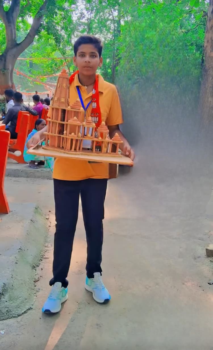 Motihari: बंजरिया. पीएम के कार्यक्रम में नगर निगम वार्ड नंबर 03 सिंघिया गुमटी निवासी दवा दुकानदार कामेश्वर साह के छोटे पुत्र अनुराग गुप्ता ने अयोध्या स्थित राम मंदिर का मॉडल खुद के हाथों से निर्माण कर लेकर पहुंचे थे. पीएम मंच पर भाषण देने के दौरान छात्र के हाथ में रखे मंदिर मॉडल को देख लिया. यह देख प्रधानमंत्री भावुक हो उठे, उन्हें धन्यवाद दिया और मंदिर को ससम्मान स्वीकार किया. उपस्थित एसपीजी के जवानों को उक्त बच्चे से मॉडल जाकर लेने का निर्देश दिया. इसके बाद जवानों को छात्र ने मॉडल सौंप दिया. साथ ही उन्होंने छात्र को मॉडल के नीचे नाम व पता लिख देने की बात कही. पीएम ने कहा कि यह एक नौजवान पूरा राम मंदिर बना कर ले आया है. वह क्या भव्य कार्य किया है. पीएम ने कहा कि मेरी चिट्ठी जरूर आपको मिलेगी. उन्होंने कहा कि मैं आपका बहुत आभारी हूं. सीता माता का जहां मरण नृत्य होता है, वहां आप मुझे अयोध्या की भव्य मंदिर की कलाकृति दे रहे हैं. बच्चे की कलाकृति को प्रभात खबर ने 16 जुलाई के अंक में प्रकाशित किया था जो लोगों के बीच चर्चा का विषय बना था .