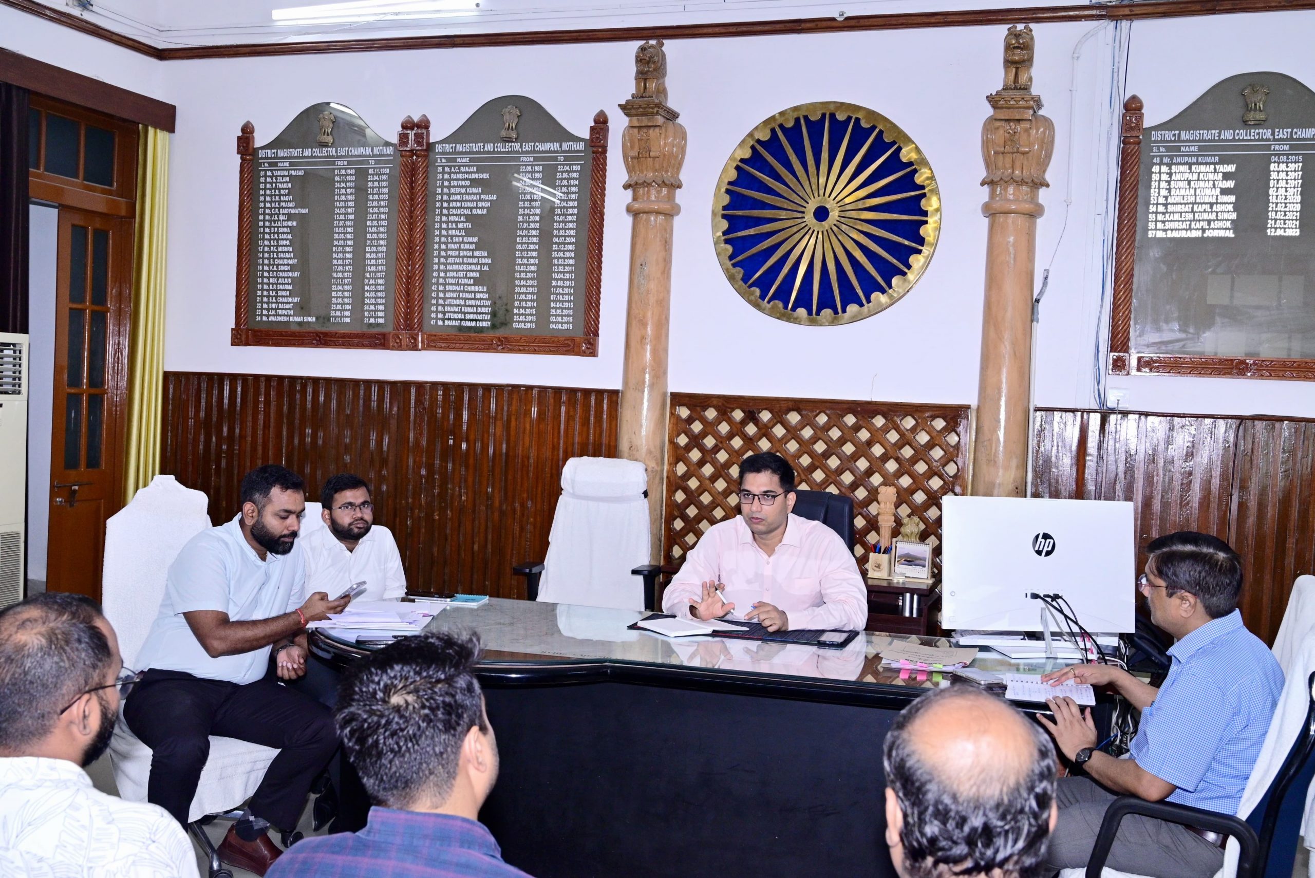 पंचायत सरकार भवन के लिए जमीन की उपलब्धता पर भी विस्तार से चर्चा की गयी. उपलब्ध जमीन की सीमांकन की समीक्षा के दौरान कार्यपालक अभियंता भवन प्रमंडल मोतिहारी ने बताया कि रक्सौल, बनकटवा, रामगढ़वा एवं बंजरिया के अंचल अधिकारी से बात हो गई है और वहां जमीन चिन्हित कर ली गयी है. प्रस्ताव शीघ्र जिला को भेजा जाएगा और उस पर आगे की कार्रवाई की जाएगी. डीएम ने इंडो- नेपाल सीमा क्षेत्र के पास पथ की समस्या को रखा और कहा कि जो समस्याएं हैं उसे तुरंत ठीक कराया जाए.मौके पर अपर समाहर्ता मुकेश कुमार सिंहा, नगर आयुक्त निगम मोतिहारी सौरव सुमन यादव, सदर एसडीओ अनुपम श्रेष्ठ के अलावा विद्युत,भवन,पीएचइडी, एलईओ, पथ निर्माण, पुल निर्माण एवं जल संसाधन विभाग के कार्यपालक अभियंता मौजूद थे.