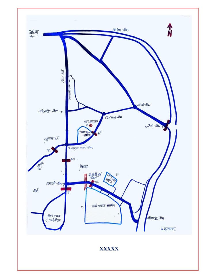 3. बलुआ चौक से कचहरी जाने वाला रास्ता4. सदर अस्पताल से फ्लाईओवर होते हुए कचहरी चौक जाने वाला रास्ता