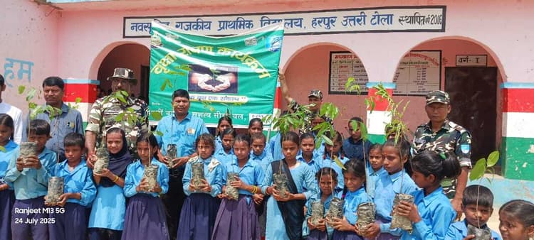 Motihari: रक्सौल. आदापुर प्रखंड क्षेत्र के हरपुर पंचायत अंतर्गत राजकीय नवसृजित प्राथमिक विद्यालय हरपुर उतरी टोला के प्रांगण में गुरुवार को सशस्त्र सीमा बल बीओपी हरपुर के जवानों ने स्कूली बच्चों के साथ पौधारोपण कार्यक्रम किया. जवानों का नेतृत्व एसआई दुर्गा राम जांगीड़ ने की. बता दें कि एक वृक्ष-एक संकल्प तथा बेटी बचाओ -बेटी पढ़ाओं के नारे लिखे बैनर-तख्तियों के साथ जवानों और स्कूली बच्चों ने पौधारोपण किया. पौधे की सैंपलिंग को मिट्टी में लगाया गया है और उन्हें पानी दी गयी. उक्त बाबत, सशस्त्र सीमा बल के जवानों का आभार व्यक्त करते हुए विद्यालय के प्रधान शिक्षक शिव शंकर गिरि ने बताया कि पौधों का हमारे जीवन में बहुत महत्व है. पौधे न केवल हमें फल, फूल, और लकड़ी प्रदान करते हैं, बल्कि पर्यावरण को भी शुद्ध रखते है. मौके पर सशस्त्र सीमा बल के जवान जयचंद राय, डब्लु कुमार राय, शशिरंजन कुमार, राठौर शामराव, जयशंकर राय एवं शिक्षक विनोद कुमार,शामशाद आलम, रंजीत कुमार पाठक सहित सैकड़ों बच्चे मौजूद मौजूद थे.