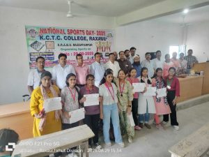 Motihari: रक्सौल . शहर के कॉलेज रोड स्थित खेमचंद ताराचंद महाविद्यालय में शनिवार को राष्ट्रीय खेल दिवस 2025 के अवसर पर इंडोर गेम (कैरम एवं शतरंज) प्रतियोगिता का सफल आयोजन महाविद्यालय के प्राचार्य डॉ. विनोद बैठ के नेतृत्व में संपन्न हुआ. इस मौके पर महाविद्यालय परिसर में एक कार्यक्रम का भी आयोजन किया गया था. कार्यक्रम का शुभारंभ दीप प्रज्वलन से हुआ, जिसे प्राचार्य डॉ. विनोद बैठ, विशिष्ट अतिथि कृष्ण आनंद, वरिष्ठ प्राध्यापक प्रो. (डॉ.) संतोष सिंह (खेल संकाय प्रमुख), खेल प्रभारी डॉ. शफिउल्लाह एवं खेल समन्वयक प्राध्यापक वीरेंद्र कुमार ने संयुक्त रूप से किया गया. दीप प्रज्वलन और स्वागत-गान के उपरांत प्रतियोगिता का औपचारिक शुभारंभ हुआ. इस अवसर पर अग्निशमन विभाग के विभिन्न पदाधिकारी भी उपस्थित रहे. आयोजित कार्यक्रम को संबोधित करते हुए प्राचार्य प्रो. बैठा ने कहा कि खेल जीवन में अनुशासन, ऊर्जा और नई संभावनाओं का संचार करते हैं. प्राचार्य डॉ. विनोद बैठ ने कहा कि खेल शिक्षा के साथ-साथ व्यक्तित्व निर्माण का भी माध्यम है और यह विद्यार्थियों को जीवन में नई ऊंचाइयों तक पहुंचने में सहायक सिद्ध होते हैं. वरिष्ठ प्राध्यापक प्रो. (डॉ.) संतोष सिंह ने खेल एवं जीवन के पारस्परिक संबंध पर प्रकाश डालते हुए छात्रों को प्रोत्साहित किया. प्रतियोगिता के संचालन एवं निर्णायक की भूमिका में महाविद्यालय की प्राध्यापक डॉ. अनामिका कुमारी, डॉ. सुनीता कुमारी, डॉ. प्रदीप कुमार श्रीवास्तव, डॉ. काजल कुमारी, डॉ. अमित कुमार, डॉ. धनु कुमार, डॉ. हजारी प्रसाद एवं श्री प्रकाश चंद्र मिश्रा ने सक्रिय योगदान दिया. वहीं, प्रो. प्रेम प्रकाश, डॉ. इंद्र भूषण, डॉ. सलीउर्रहमान, शिक्षकेत्तर कर्मी कुमार अमित, मो. शम्स, रोहित कुमार, उज्ज्वल मिश्रा, लाल बाबू एवं नीरज कुमार मिश्रा ने भी कार्यक्रम को सफल बनाने में सहयोग प्रदान किया. कार्यक्रम का मंच संचालन अंग्रेजी विभाग के प्राध्यापक डॉ. कृष्ण कुमार ने किया. छात्र-छात्राओं की उत्साहपूर्ण भागीदारी और शिक्षकों-कर्मचारियों के सहयोग से यह आयोजन अत्यंत सफल एवं यादगार सिद्ध हुआ.