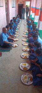 Motihari: बीइओ ने बच्चों के साथ चखा मध्याह्न भोजन